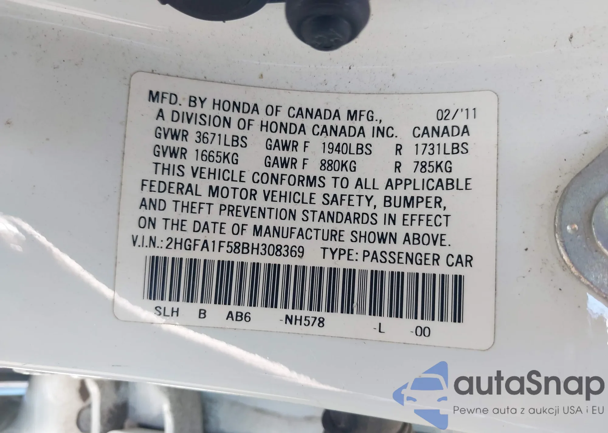 LOT: 43930578 VIN: 5FNYF4H4XEB007322