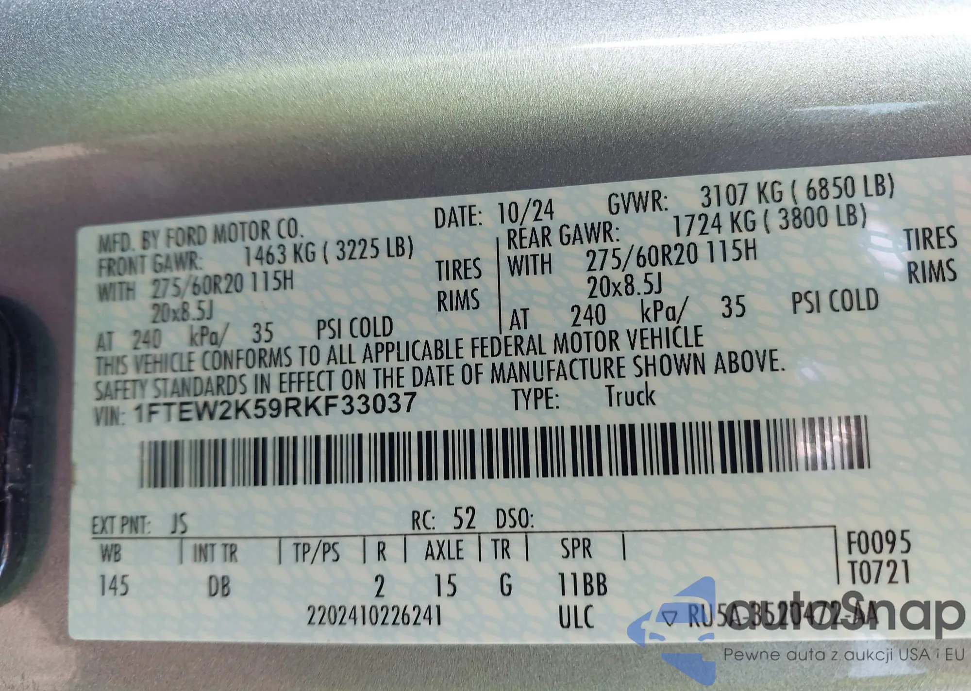 • VIN 1FTEW2K59RKF33037