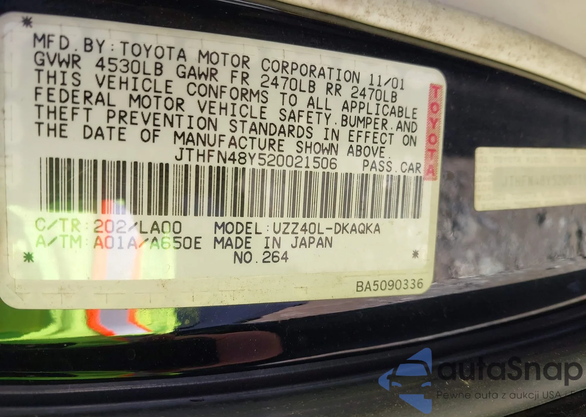 • VIN JTHFN48Y520021506