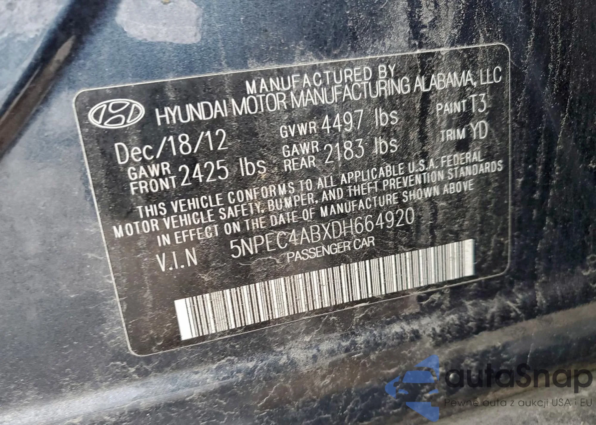 • VIN 5NPEC4ABXDH664920
