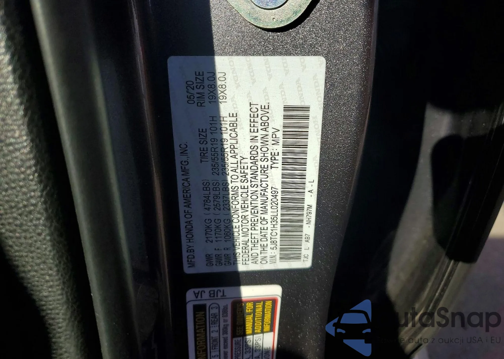 • VIN 5J8TC1H35LL020497