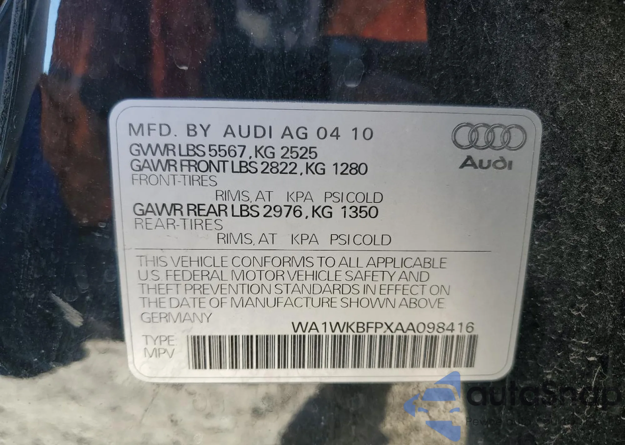 • VIN WA1WKBFPXAA098416