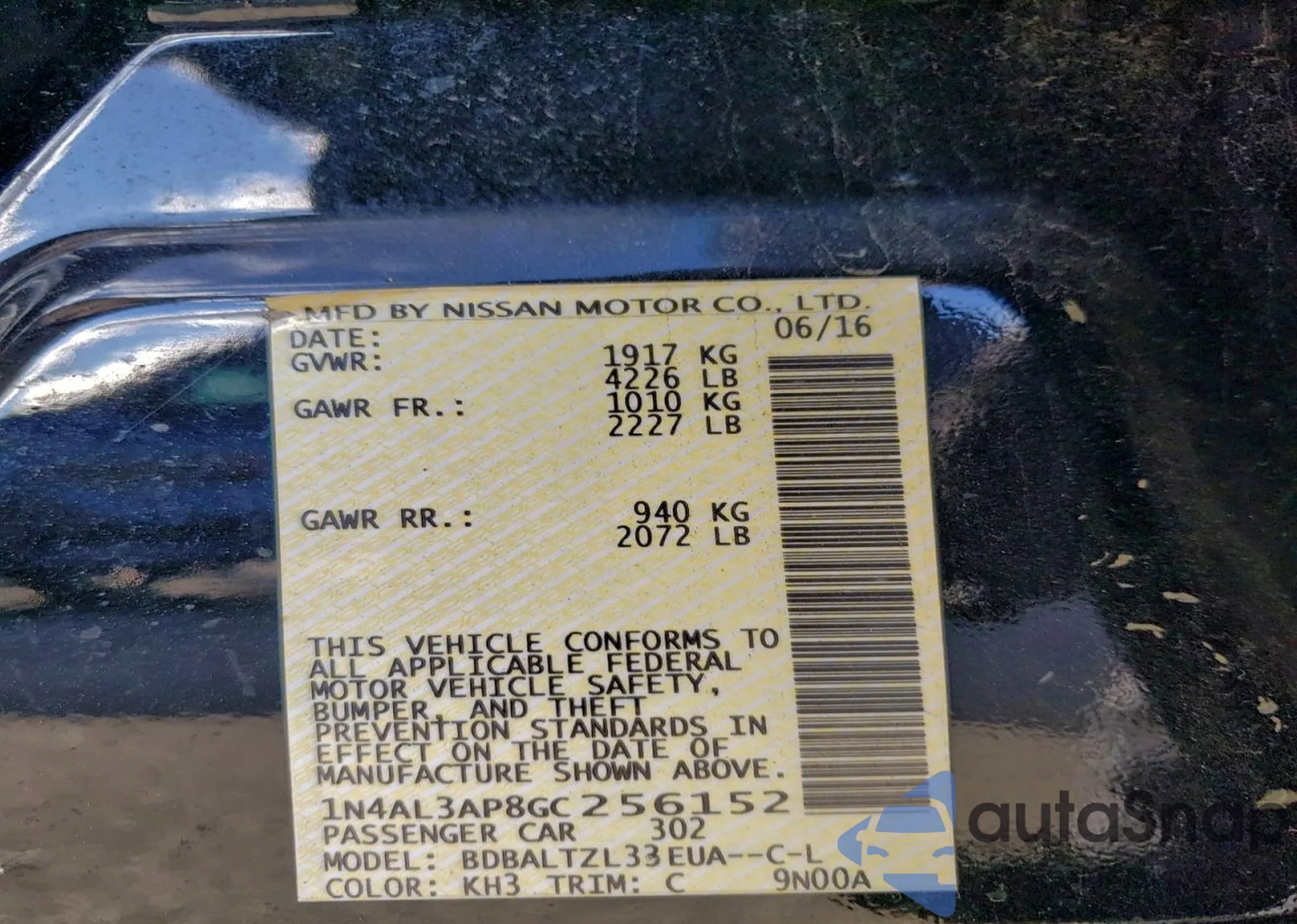 • VIN 1N4AL3AP8GC256152