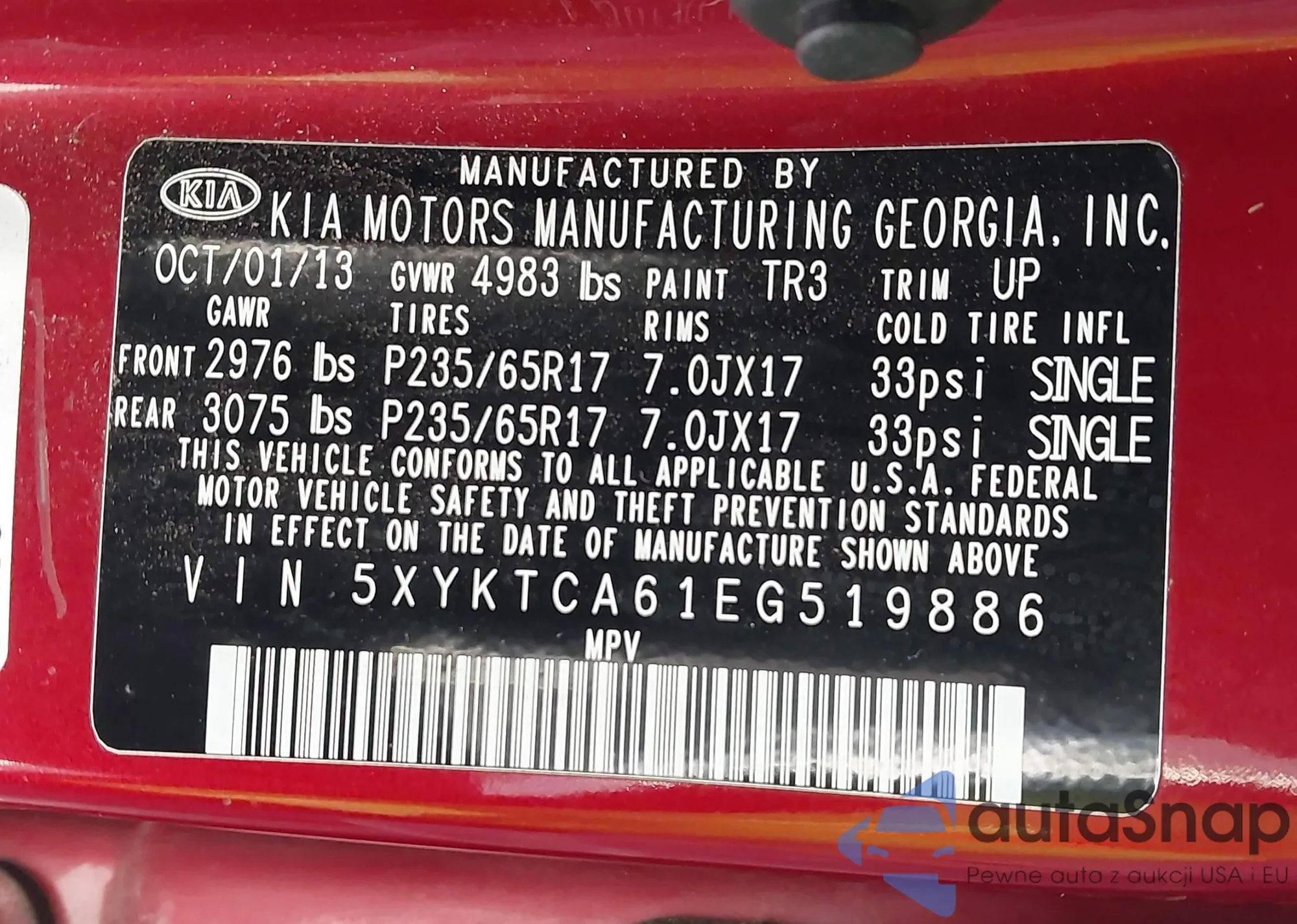 • VIN 5XYKTCA61EG519886