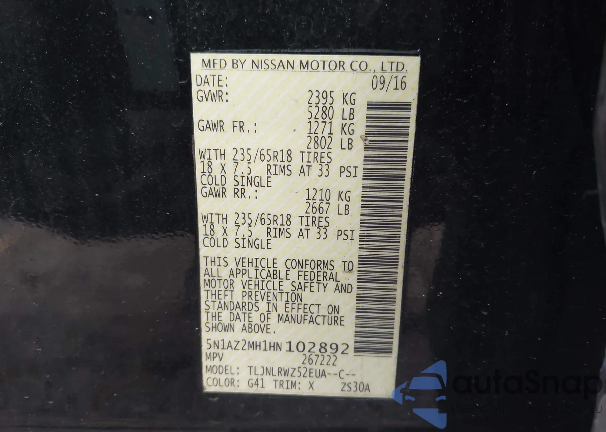 • VIN 5N1AZ2MH1HN102892