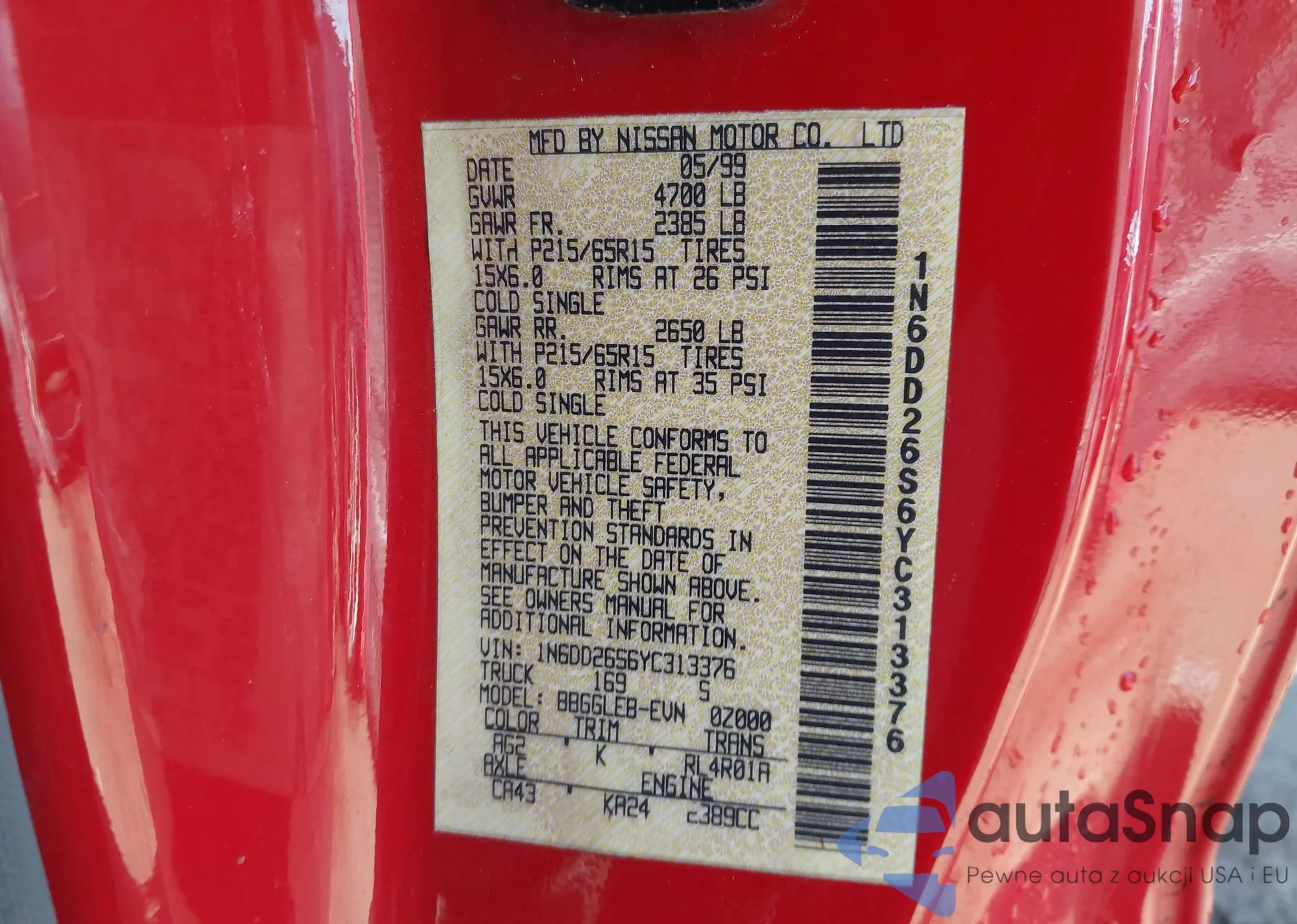 • VIN 1N6DD26S6YC313376