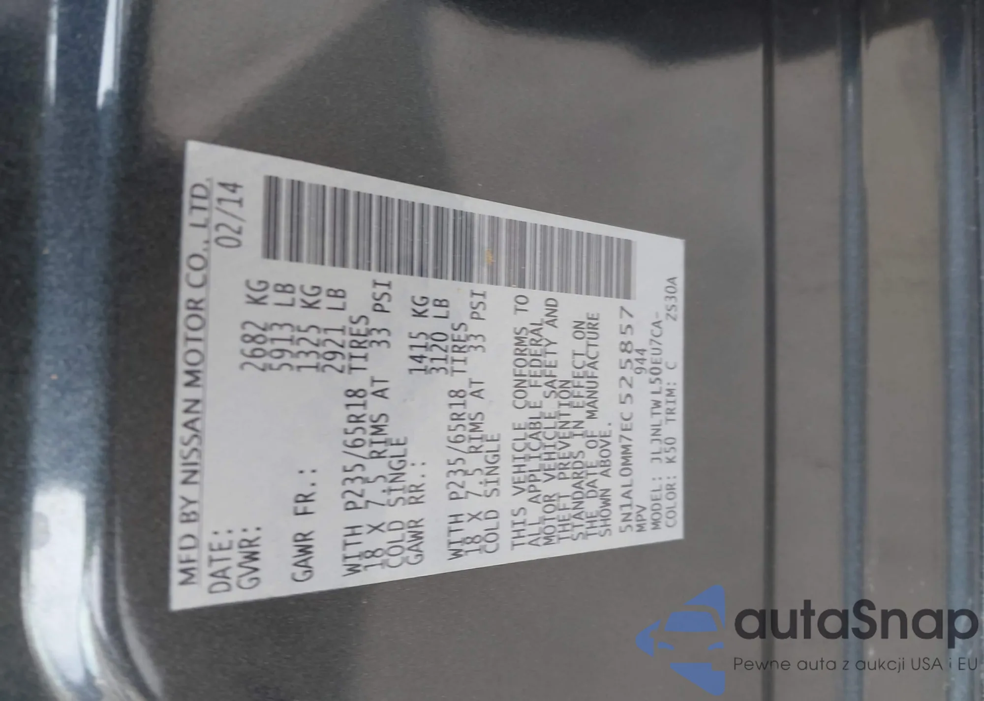 LOT: 43874152 VIN: 5UX23EM04P9R18295