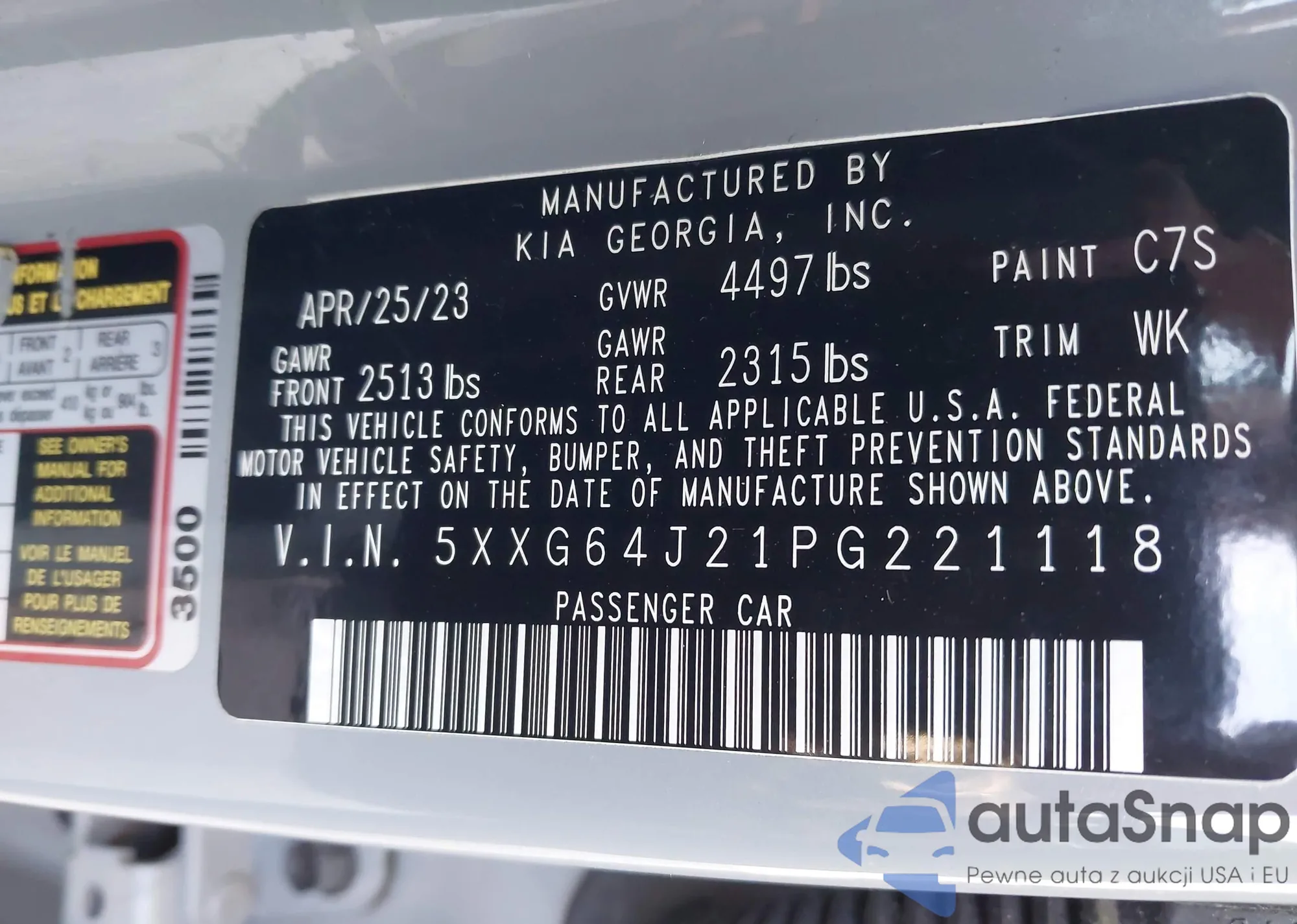 • VIN 5XXG64J21PG221118
