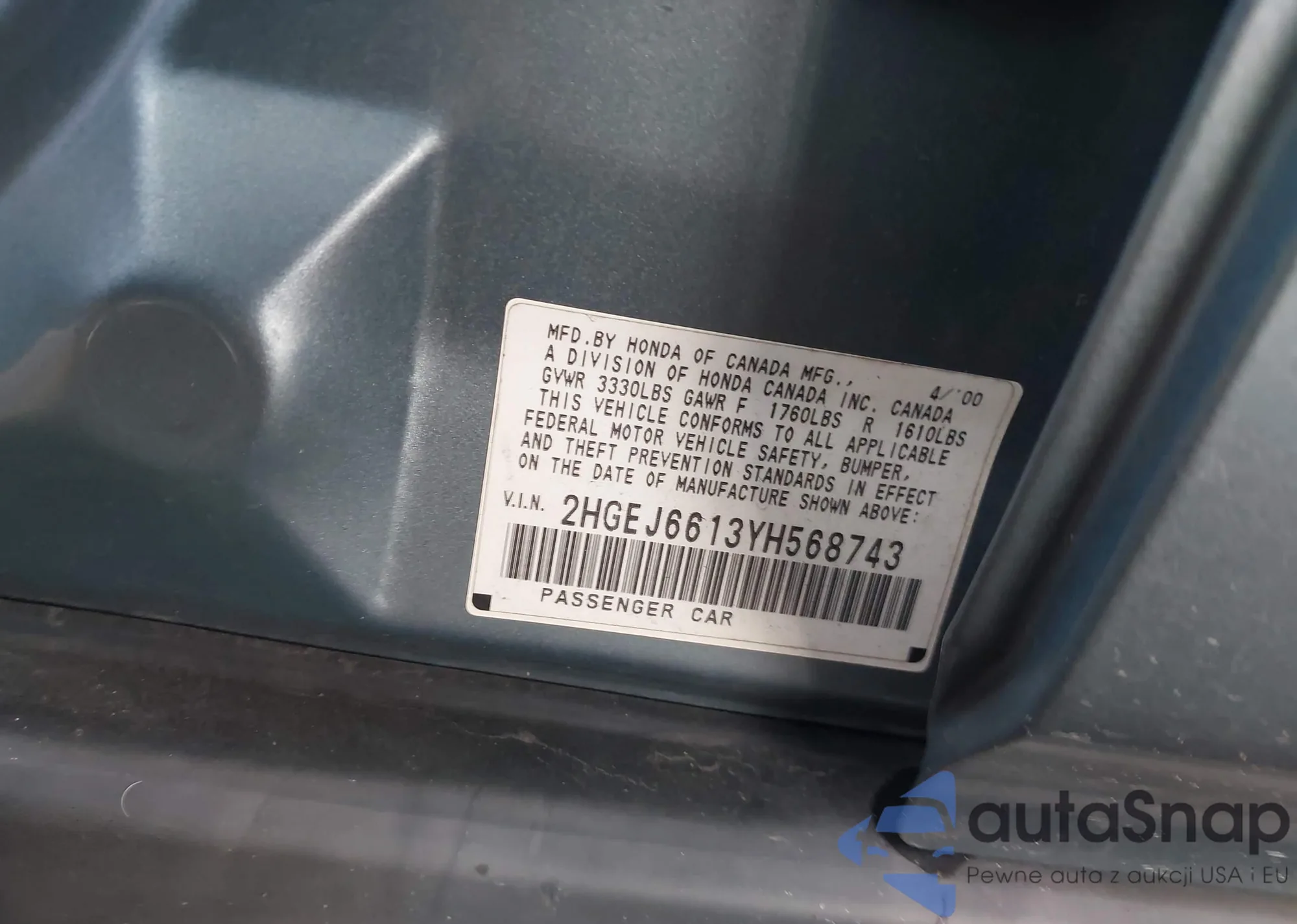 LOT: 43620332 VIN: JHLRD1868YC027261