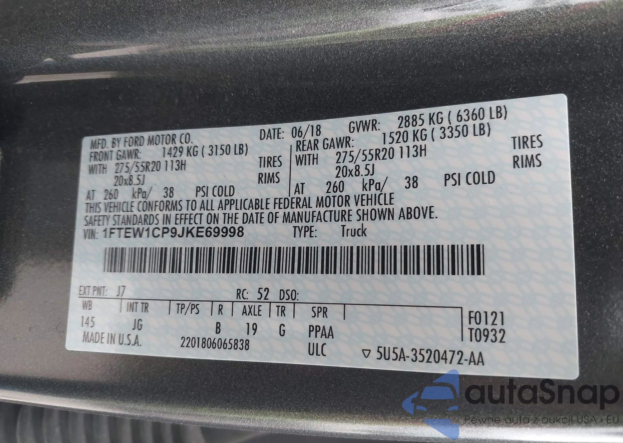 LOT: 43969118 VIN: 8F03Y243061