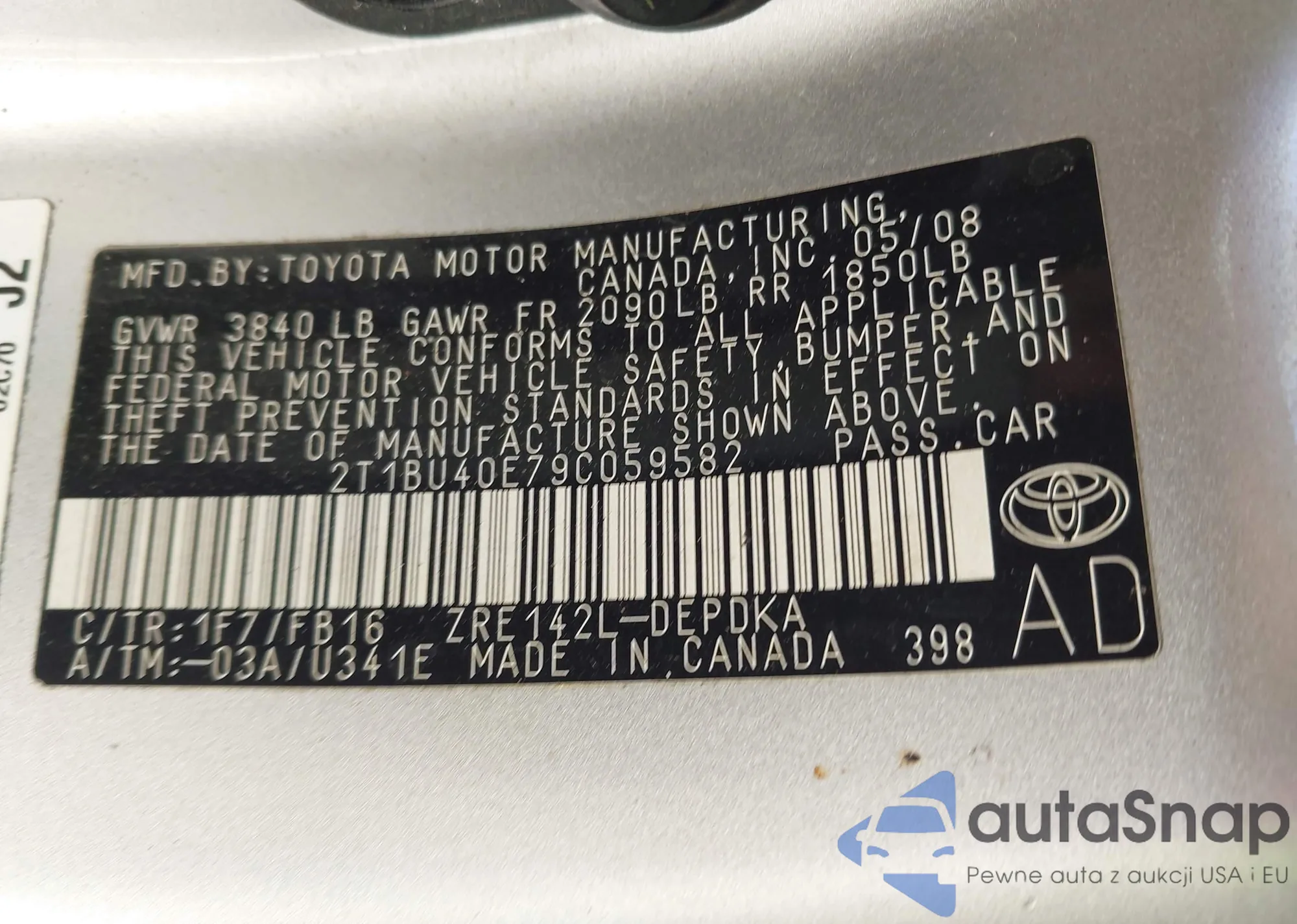 • VIN 2T1BU40E79C059582