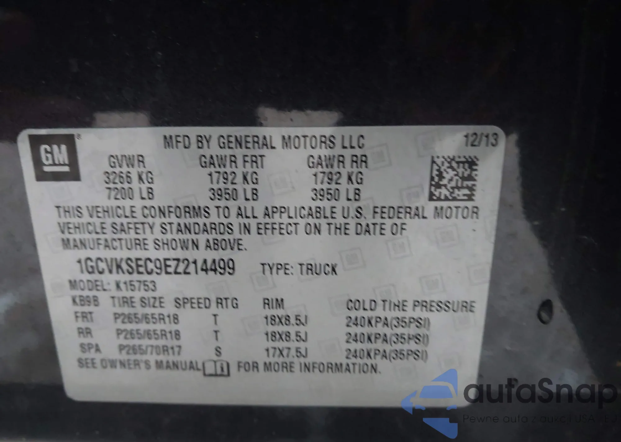 • VIN 1GCVKSEC9EZ214499