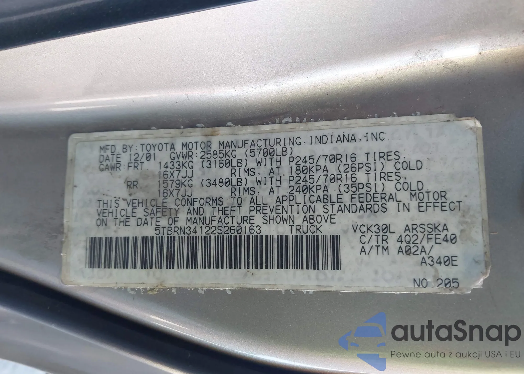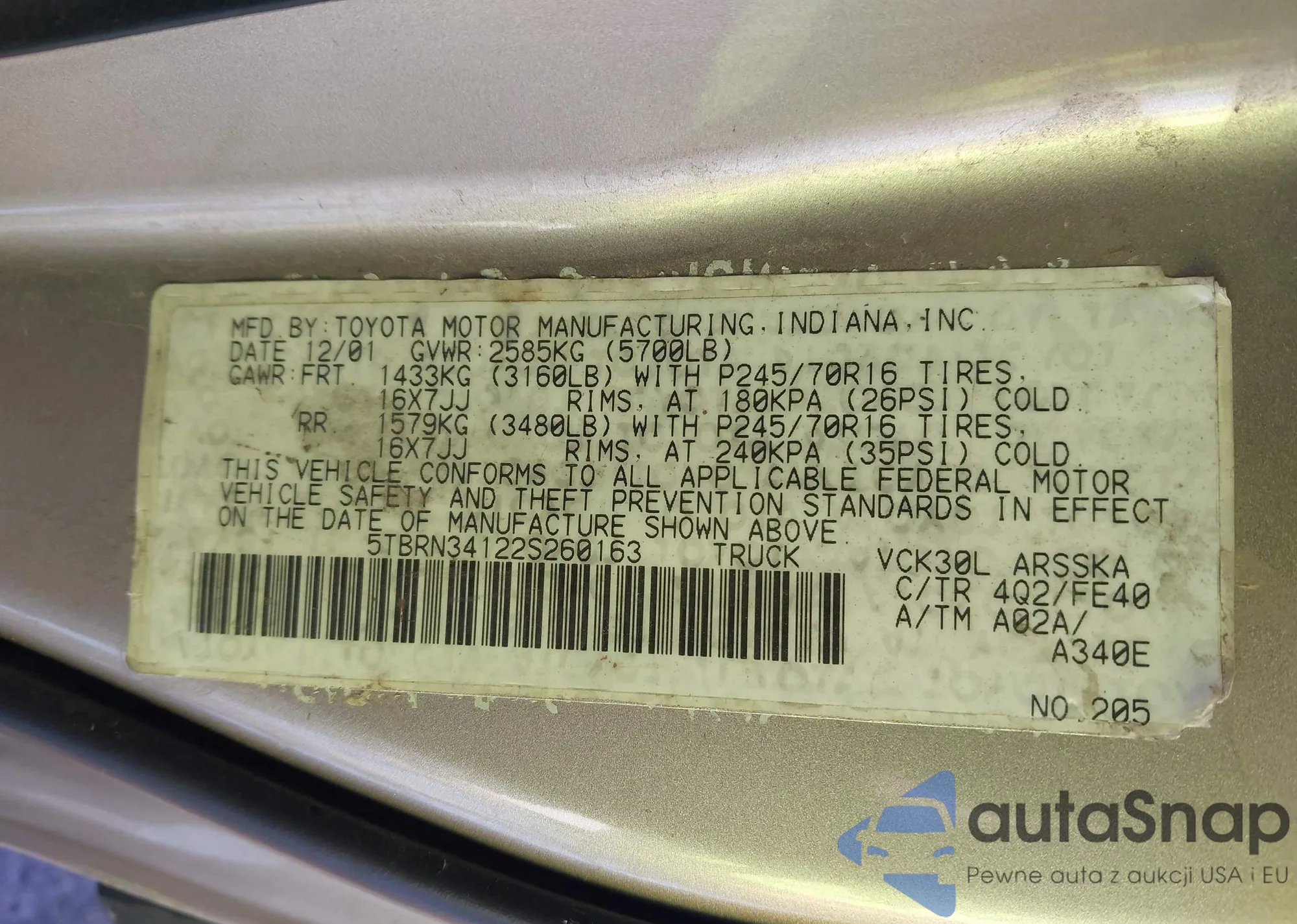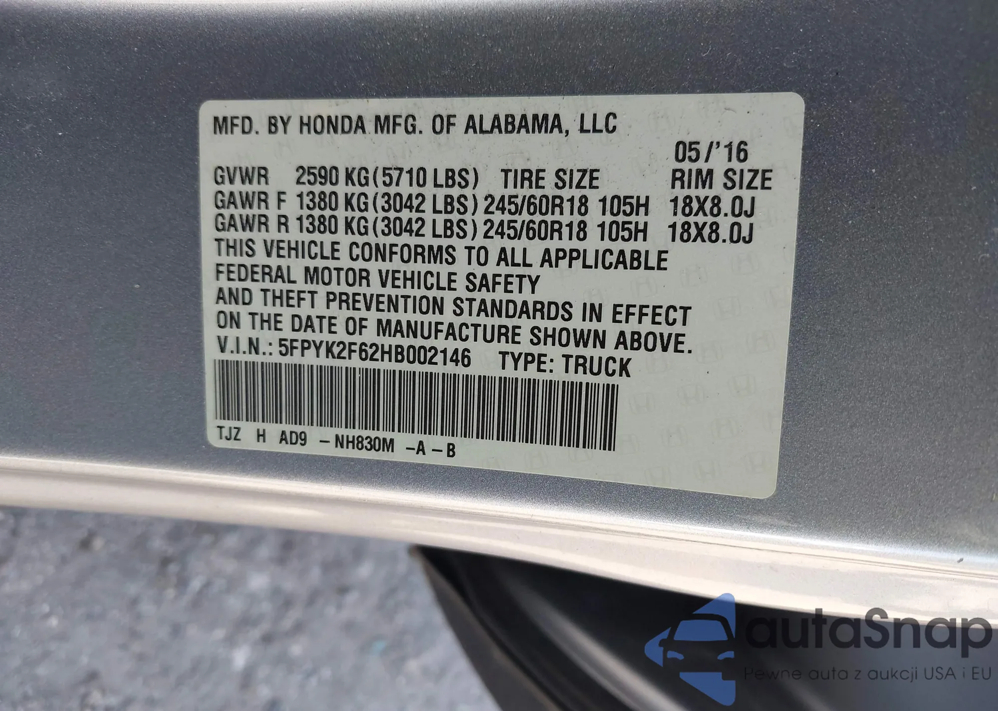 • VIN 5FPYK2F62HB002146