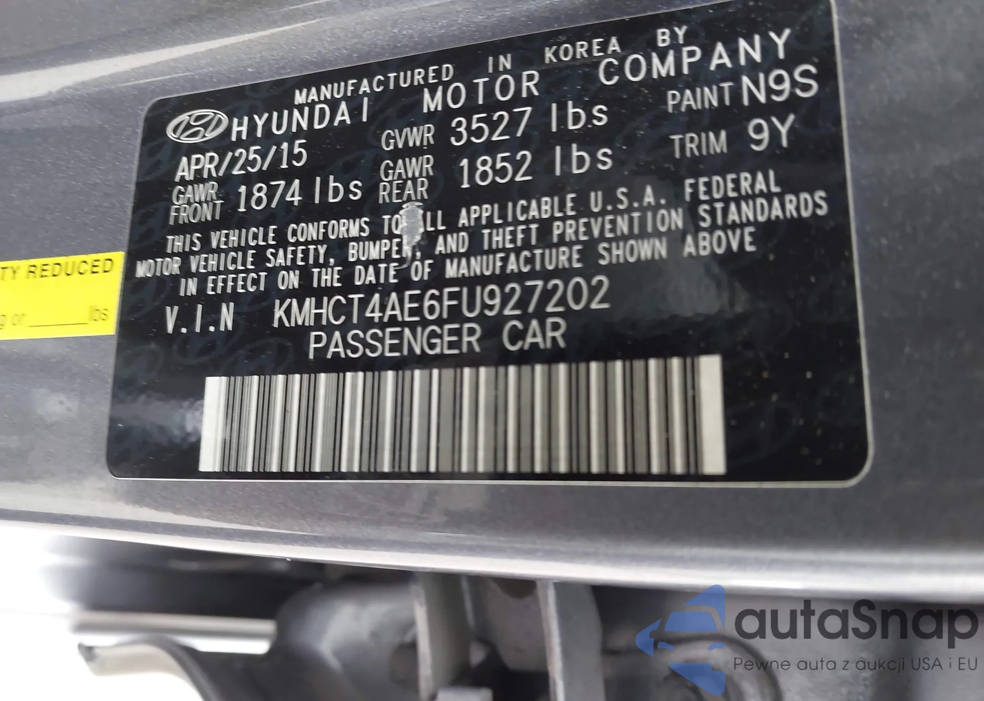 LOT: 44004771 VIN: KMHCT4AE6FU927202