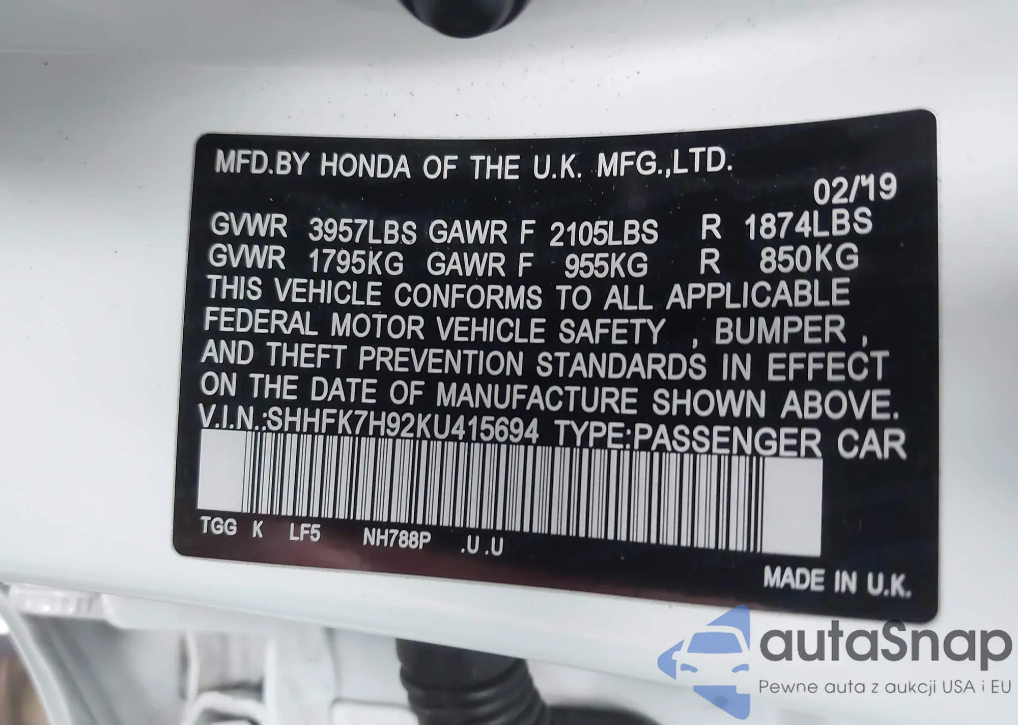 • VIN SHHFK7H92KU415694
