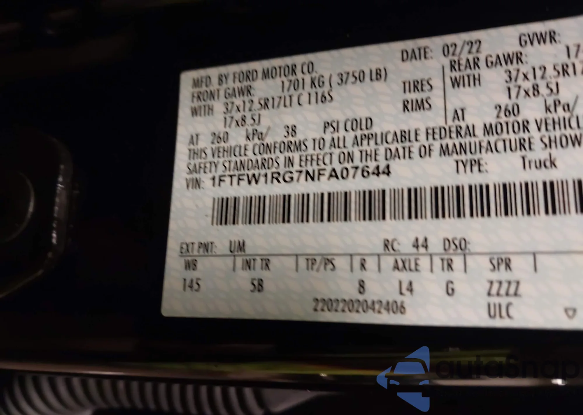 LOT: 44031639 VIN: 1FTEW1CM5DFB84072