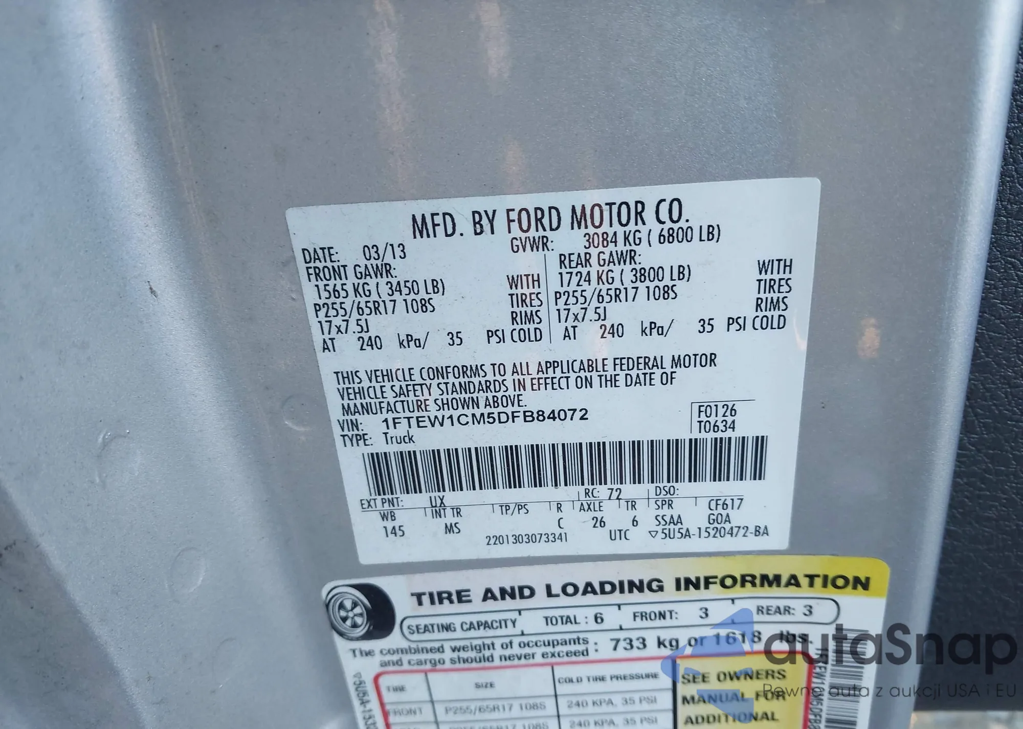 • VIN 1FTEW1CM5DFB84072