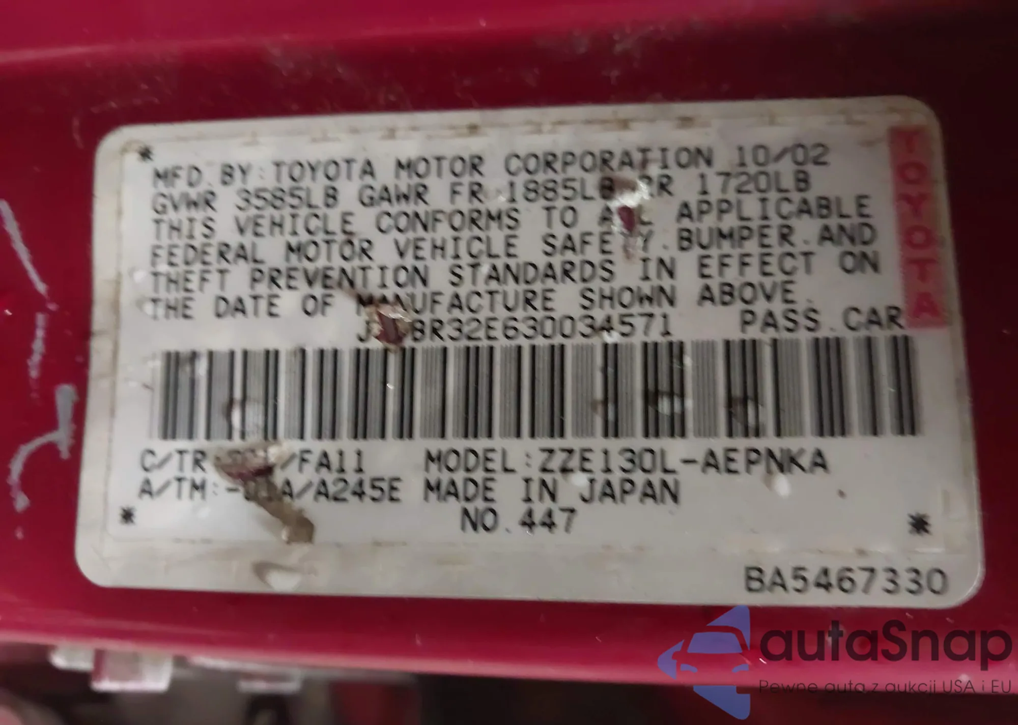 LOT: 44037794 VIN: 1NXBR30E26Z694862