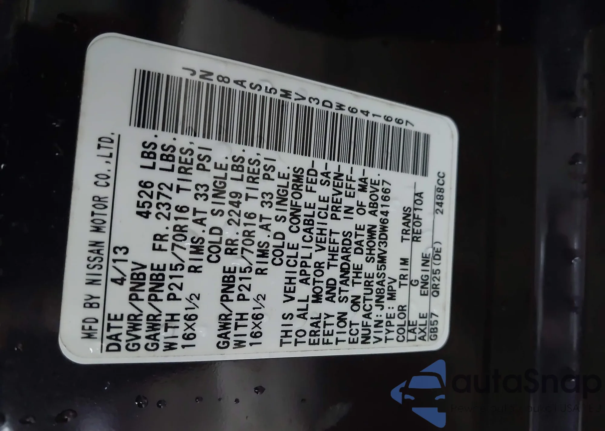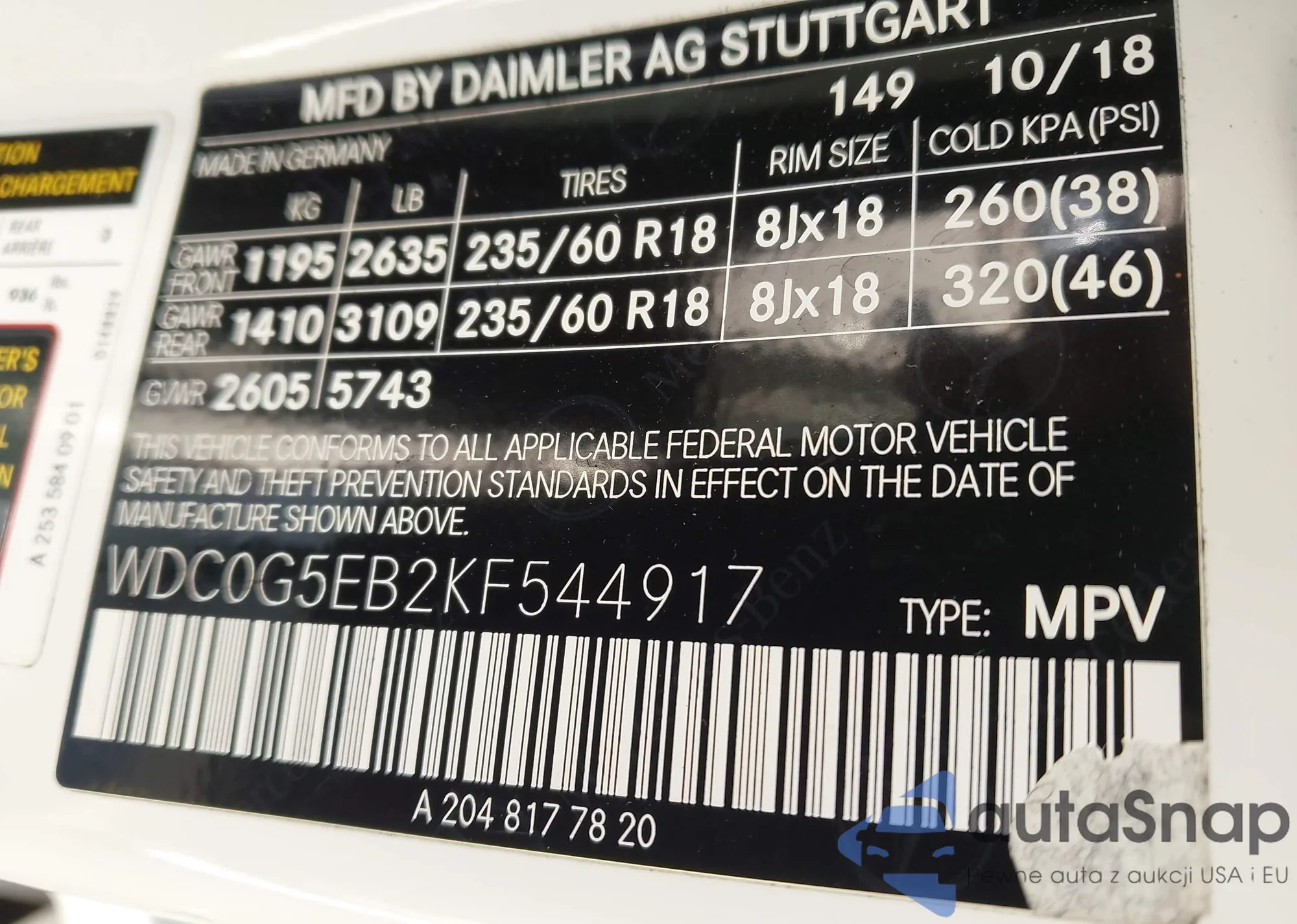 • VIN WBA13AG04NCK75459