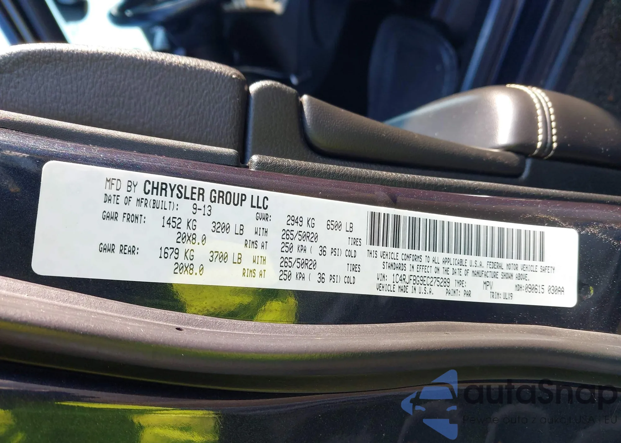 • VIN 1C4RJFBG9EC275289