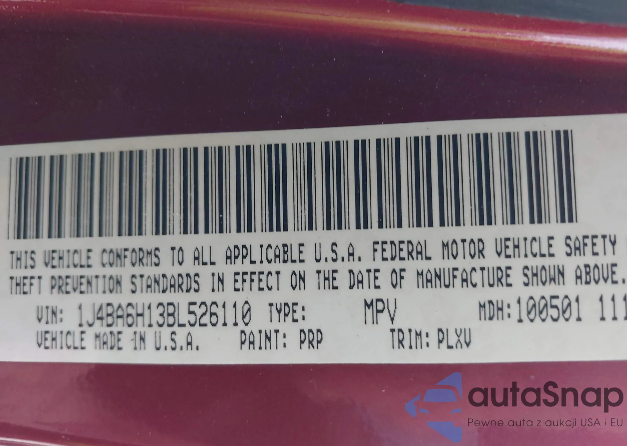 • VIN 1J4BA6H13BL526110