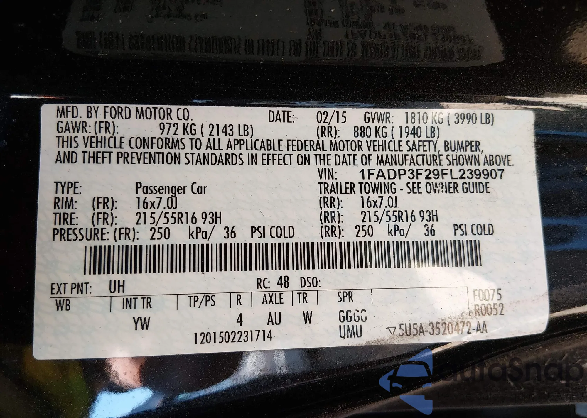 LOT: 43968913 VIN: 1FADP3F29FL239907