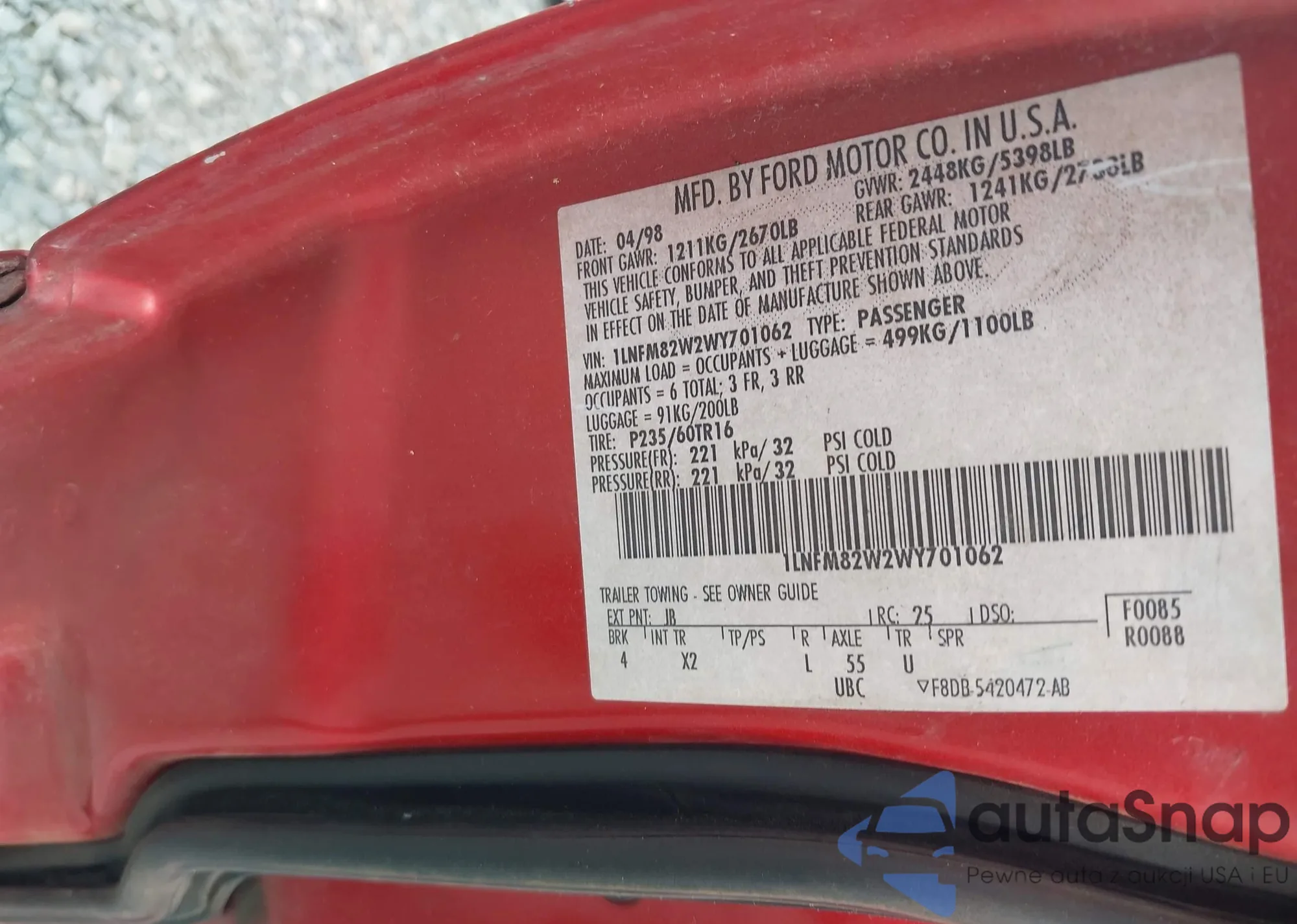 • VIN 1FTNE2EL5BDB40434
