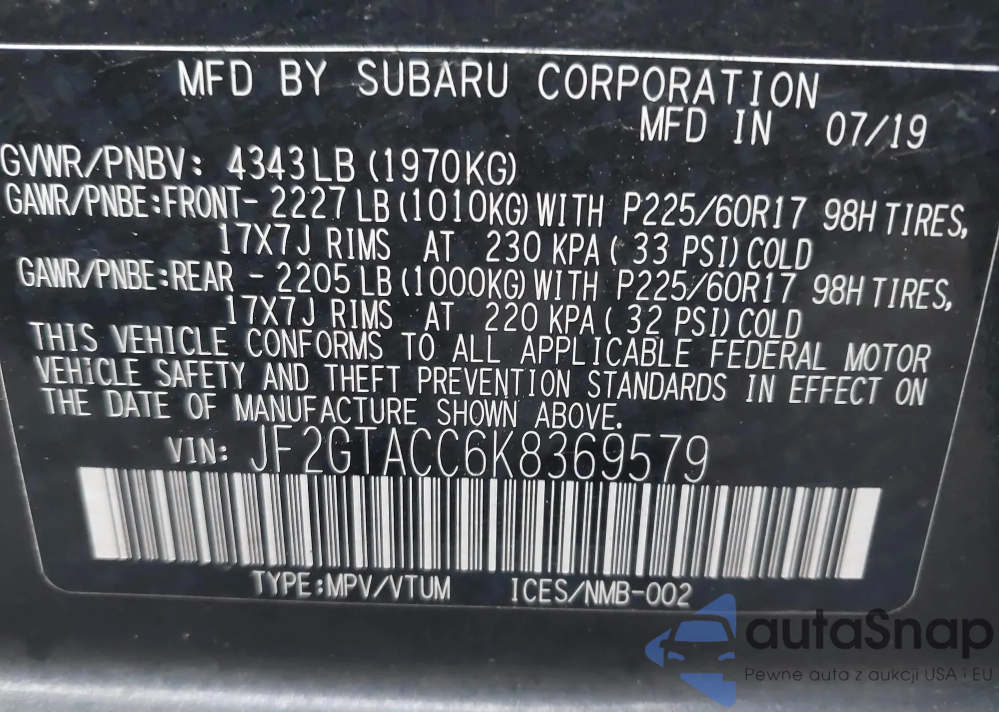 • VIN 3CZRU5H70KM709161