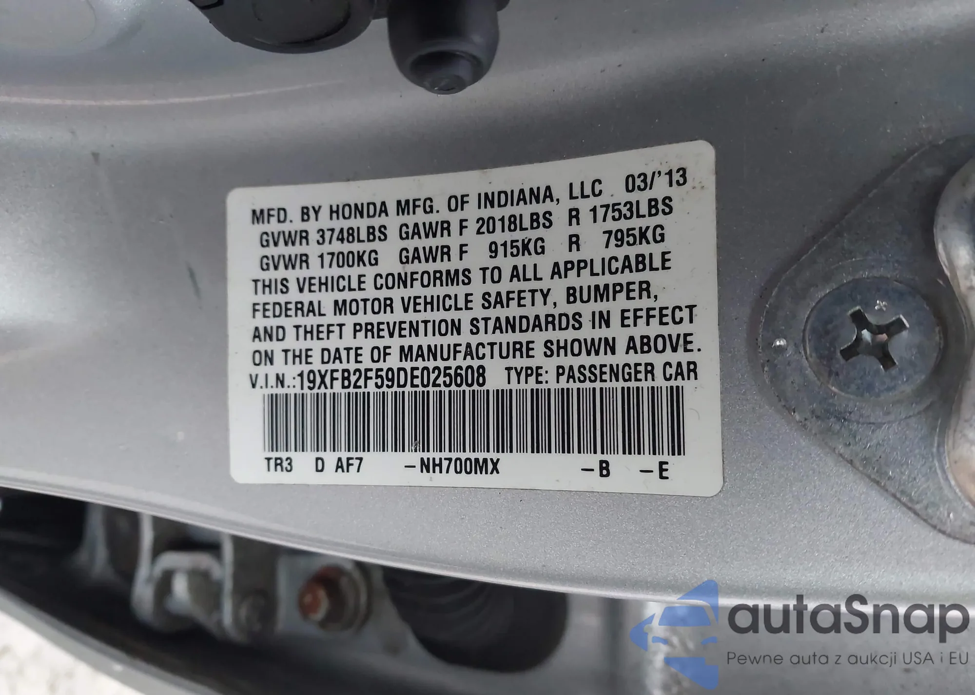 LOT: 44004131 VIN: 19XFB2F59DE025608