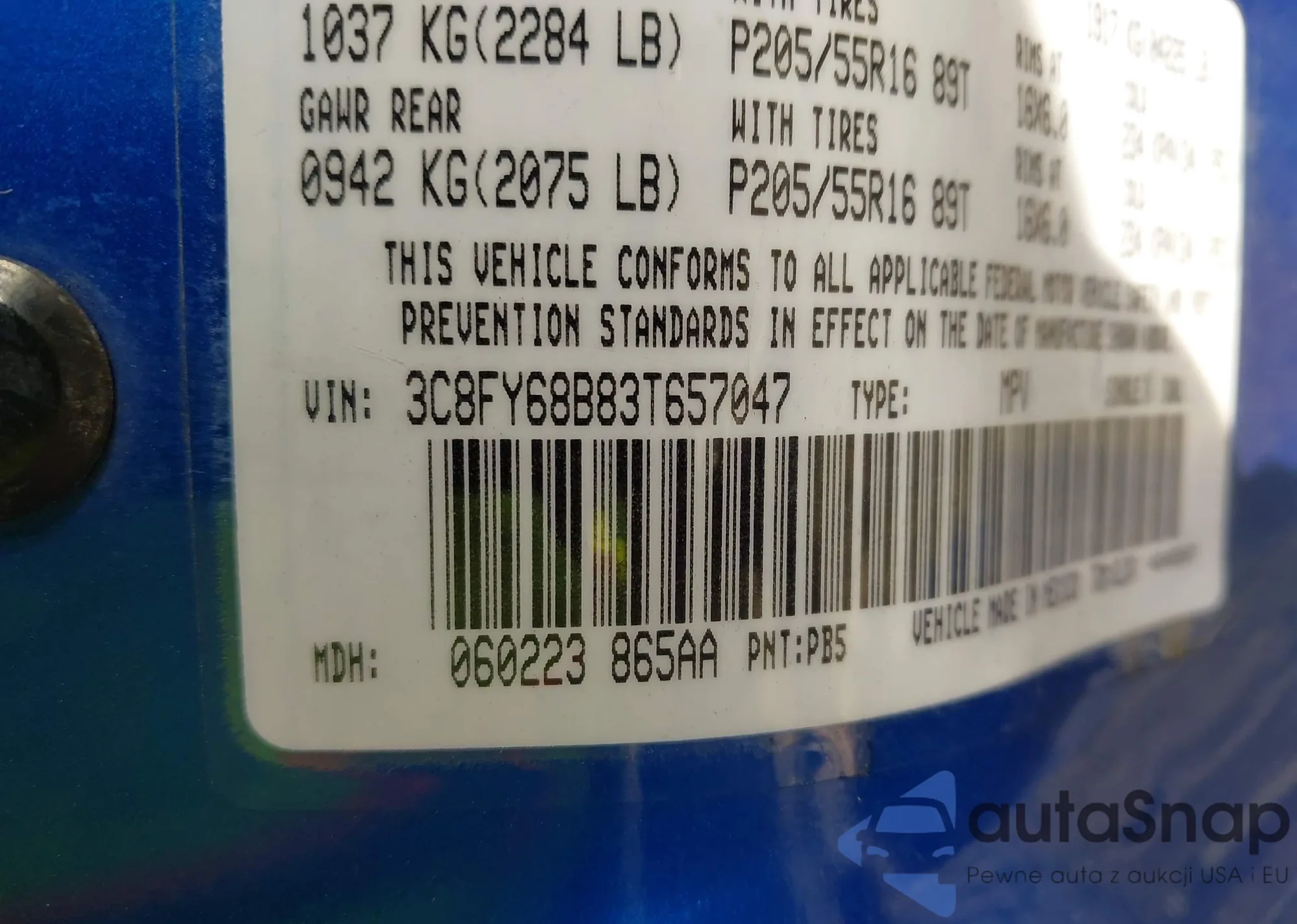 LOT: 44014625 VIN: 3C8FY68B83T657047