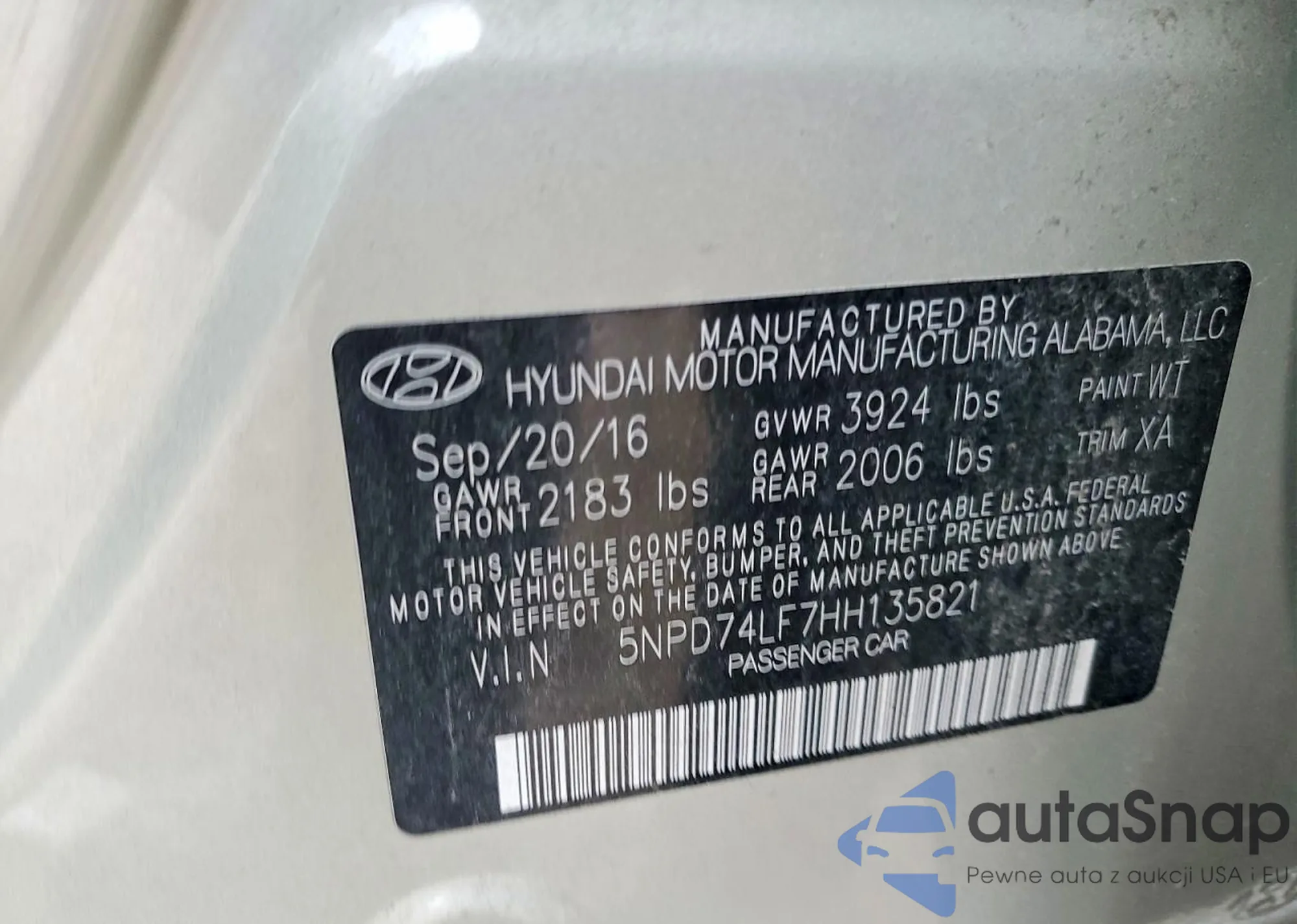 • VIN 5J6RM4H71DL027274