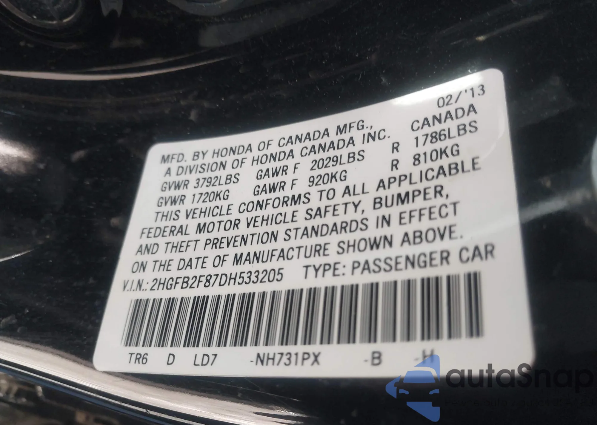 • VIN 1HGCR2F35FA205205