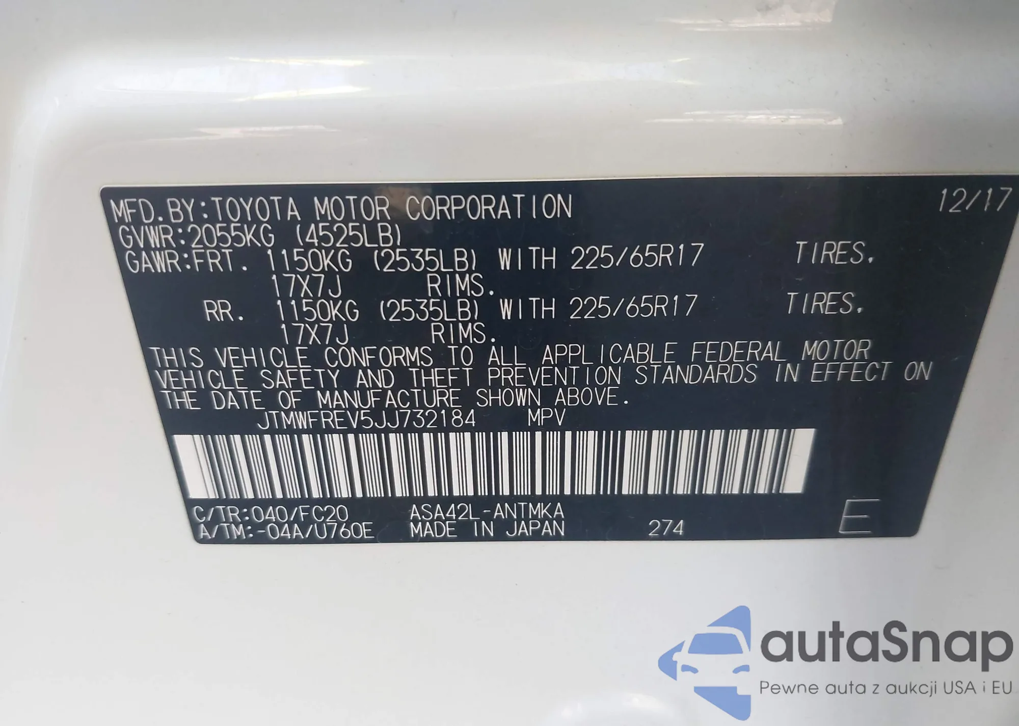 LOT: 43788269 VIN: WA1ANAFY9J2013354