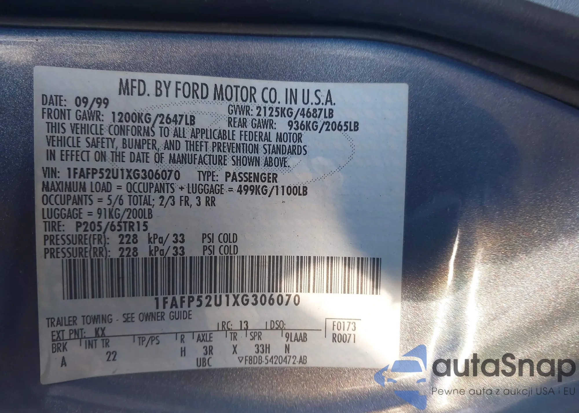 • VIN 1FAFP52U1XG306070