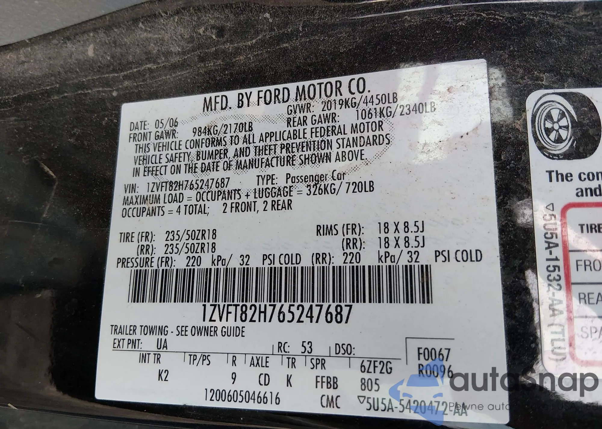 • VIN 1ZVFT82H765247687