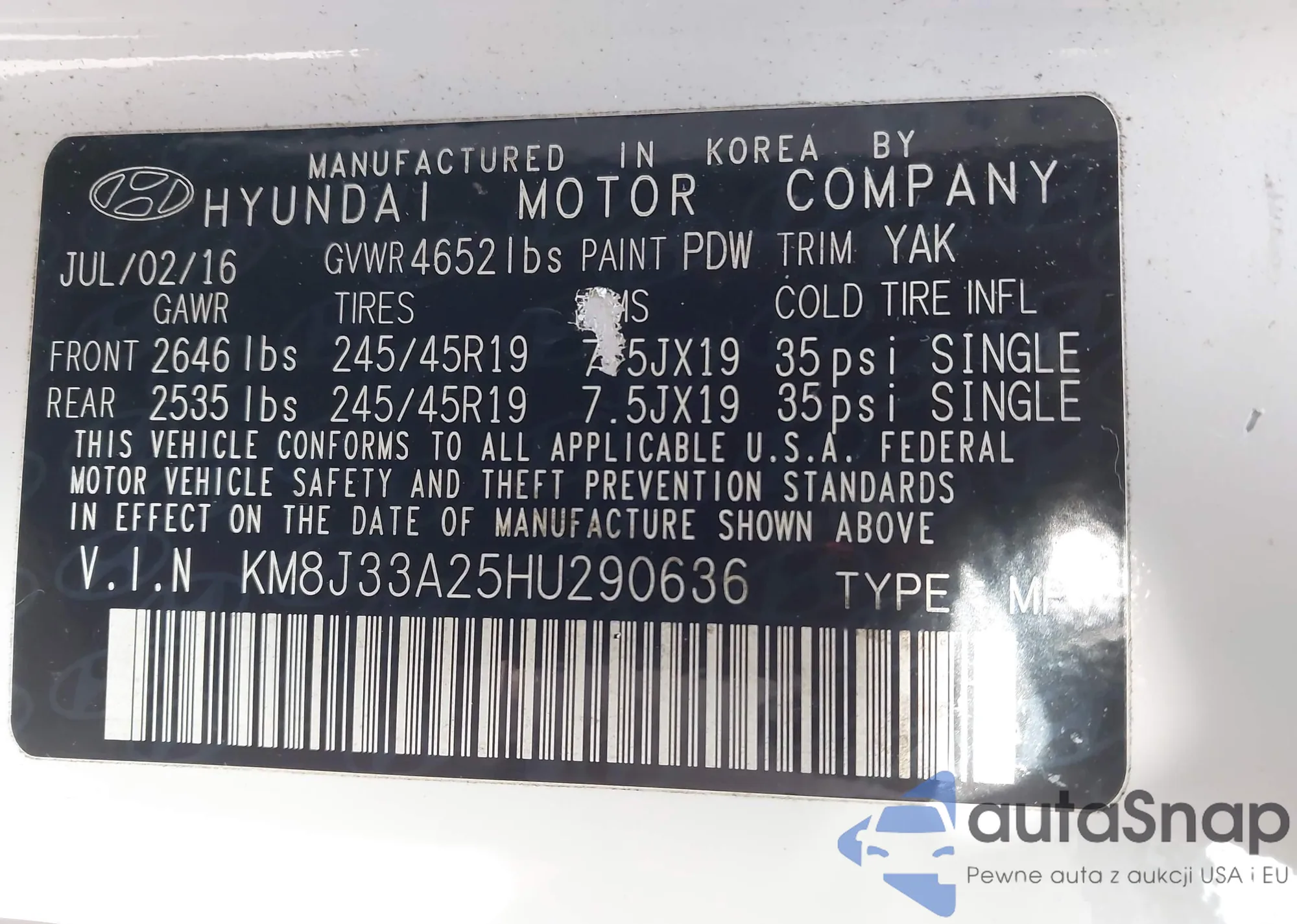 • VIN KM8J33A25HU290636