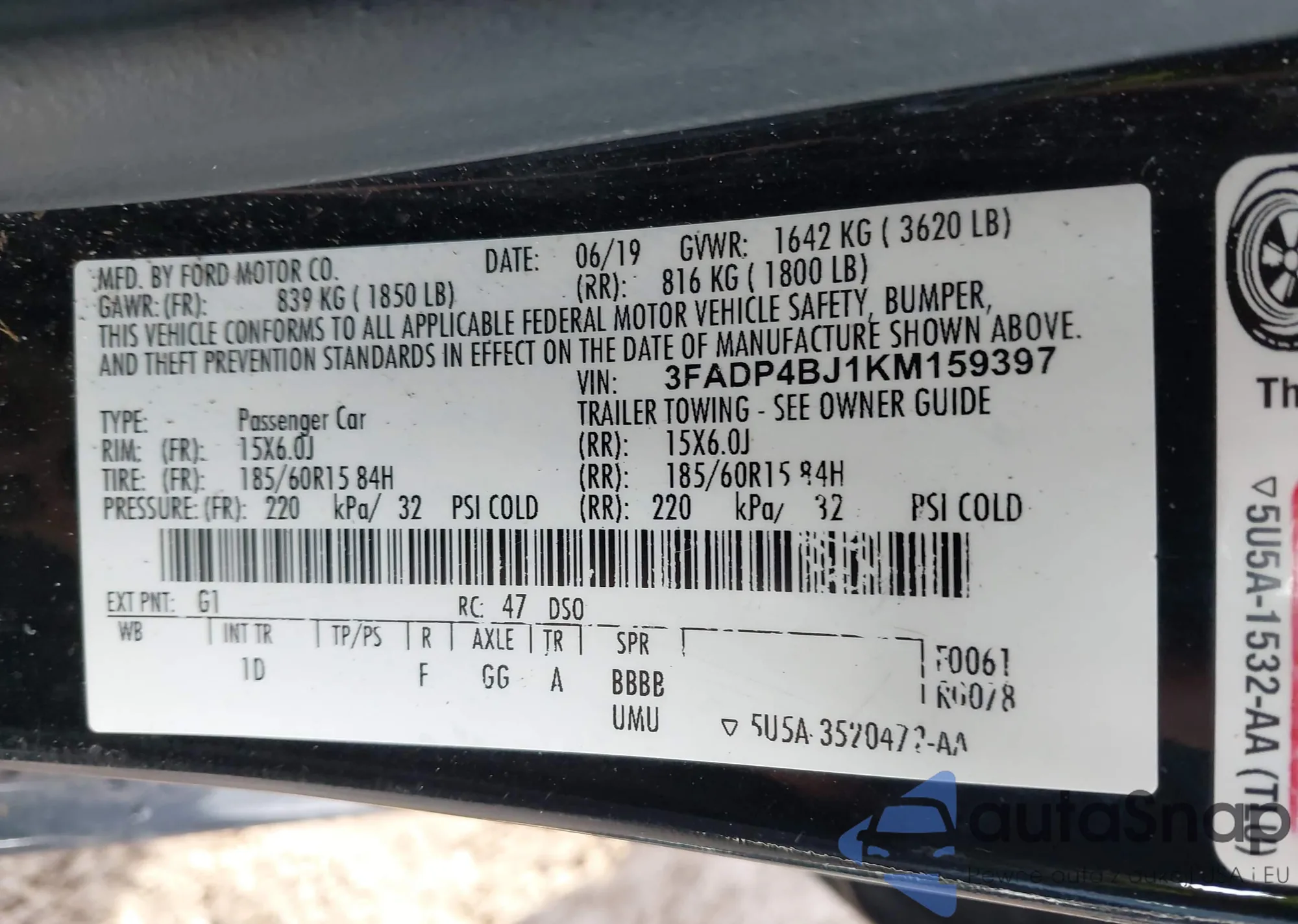 LOT: 43983479 VIN: 3FADP4BJ1KM159397