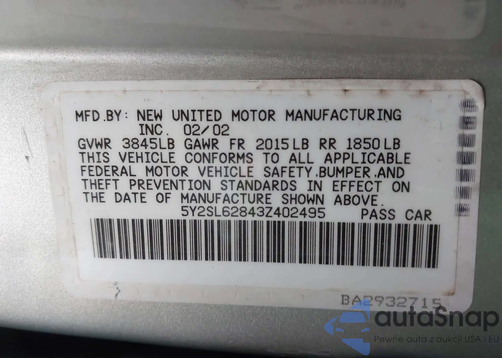 • VIN JHMGD386X7S031976