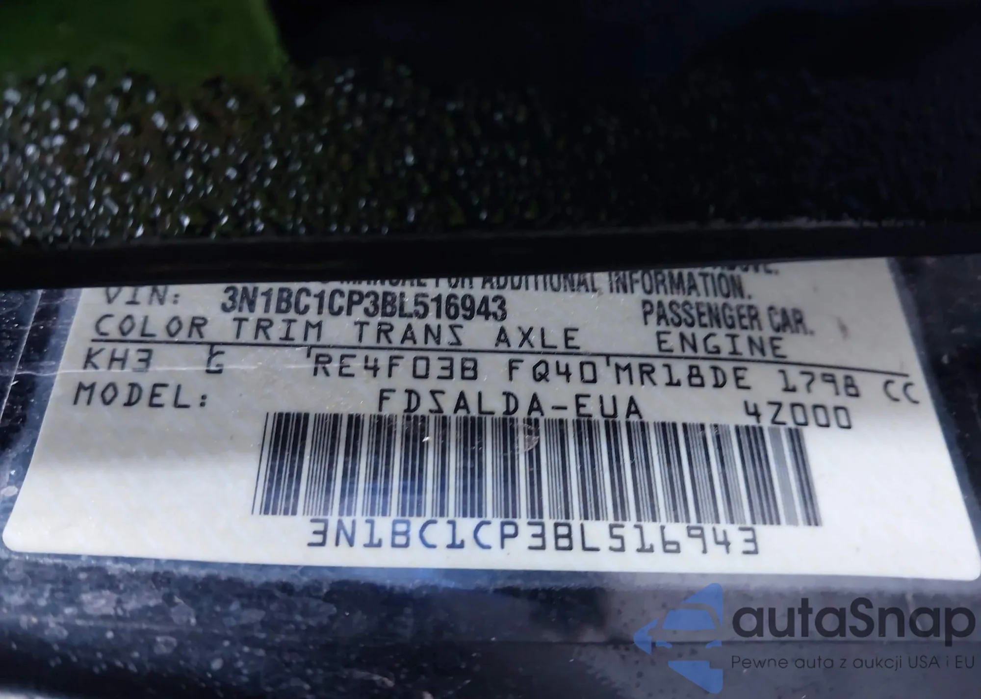 • VIN 3N1BC1CP3BL516943