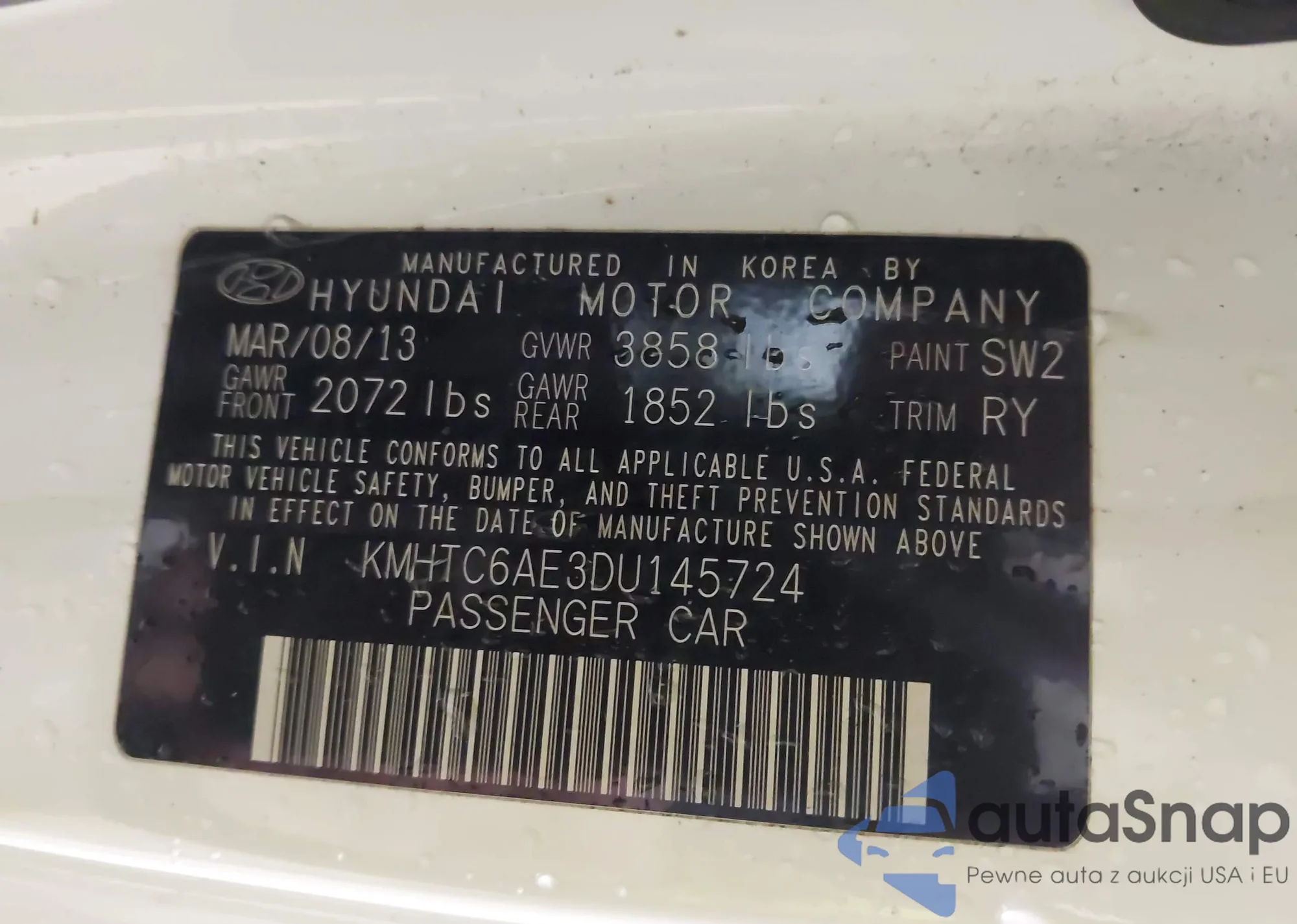 • VIN KMHTC6AE3DU145724