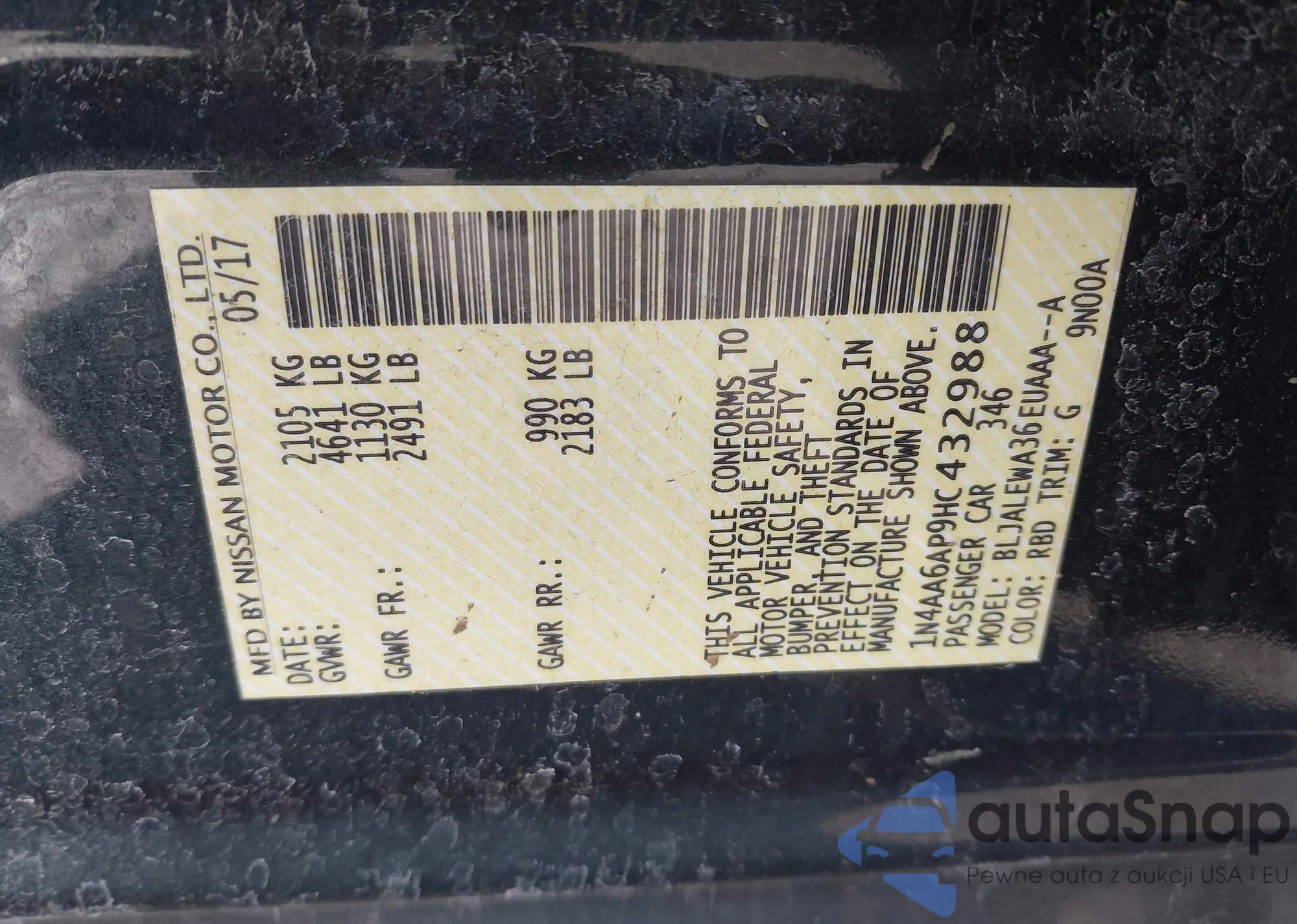 LOT: 43965967 VIN: 1N4AA6AP9HC432988