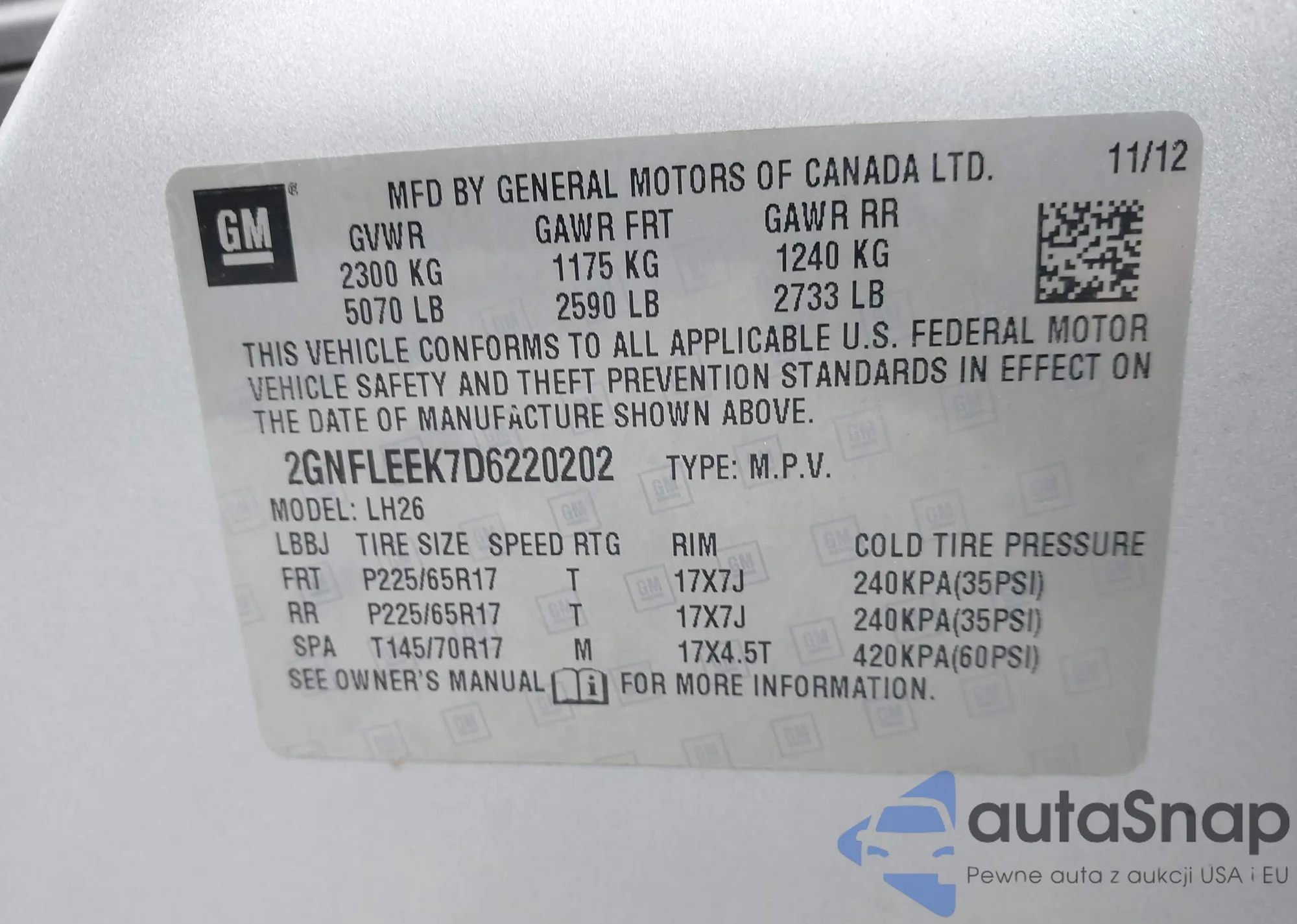 • VIN 2GNFLEEK7D6220202