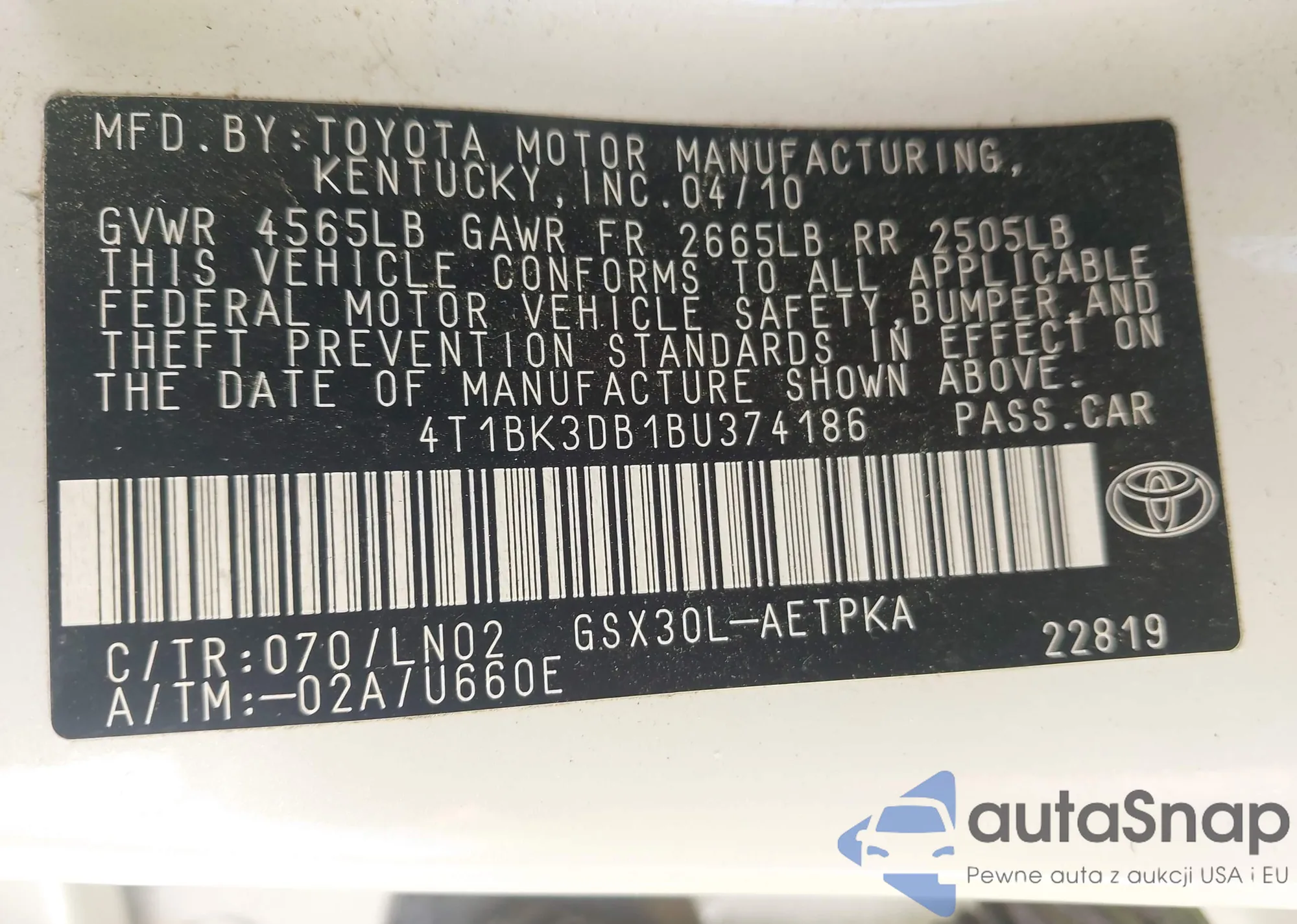 LOT: 43232957 VIN: JTDBCMFE1PJ004508