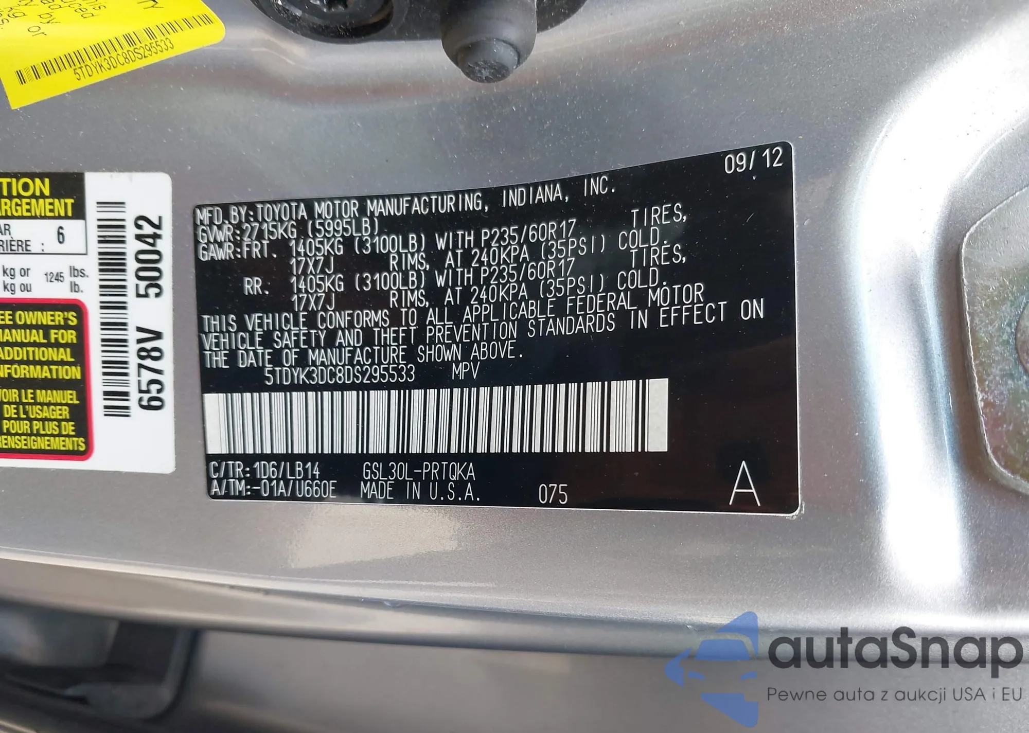 • VIN 5TDYK3DC8DS295533