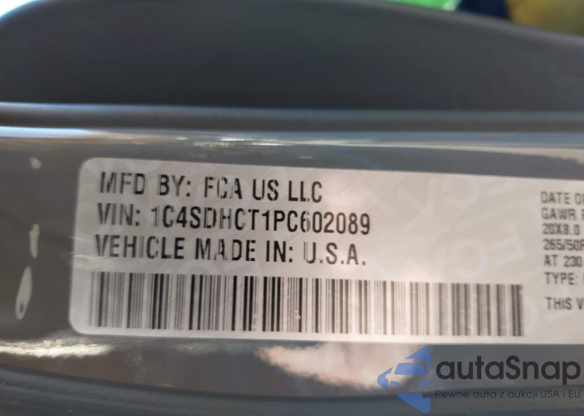 • VIN 1C4SDHCT1PC602089