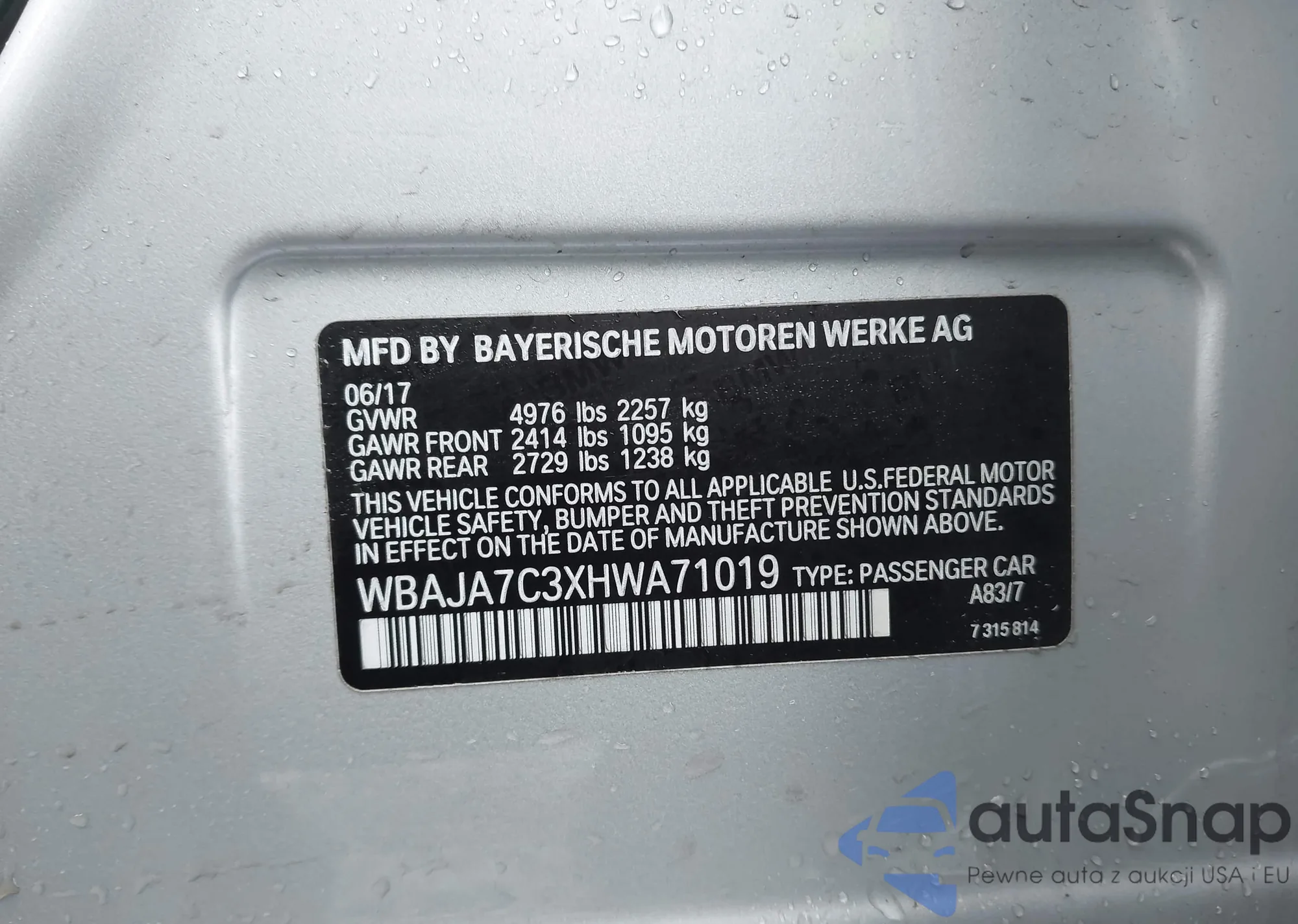 • VIN WBAJA7C3XHWA71019