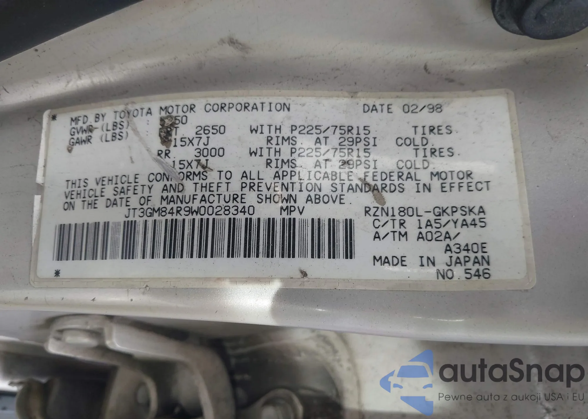 LOT: 44083463 VIN: JT3GM84R9W0028340