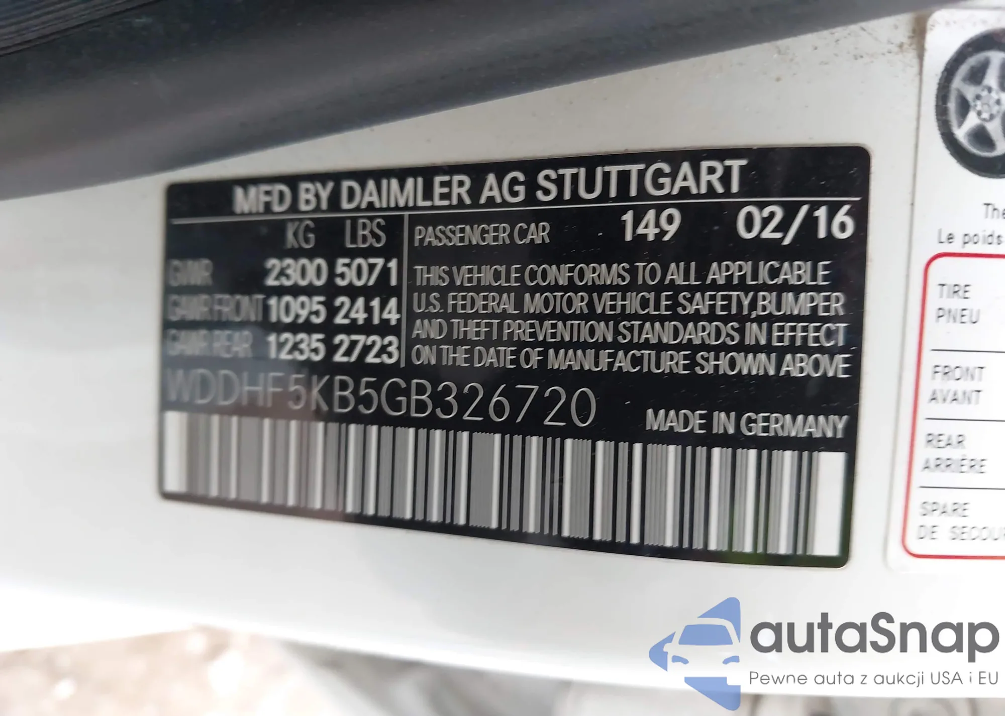• VIN WDDHF5KB5GB326720