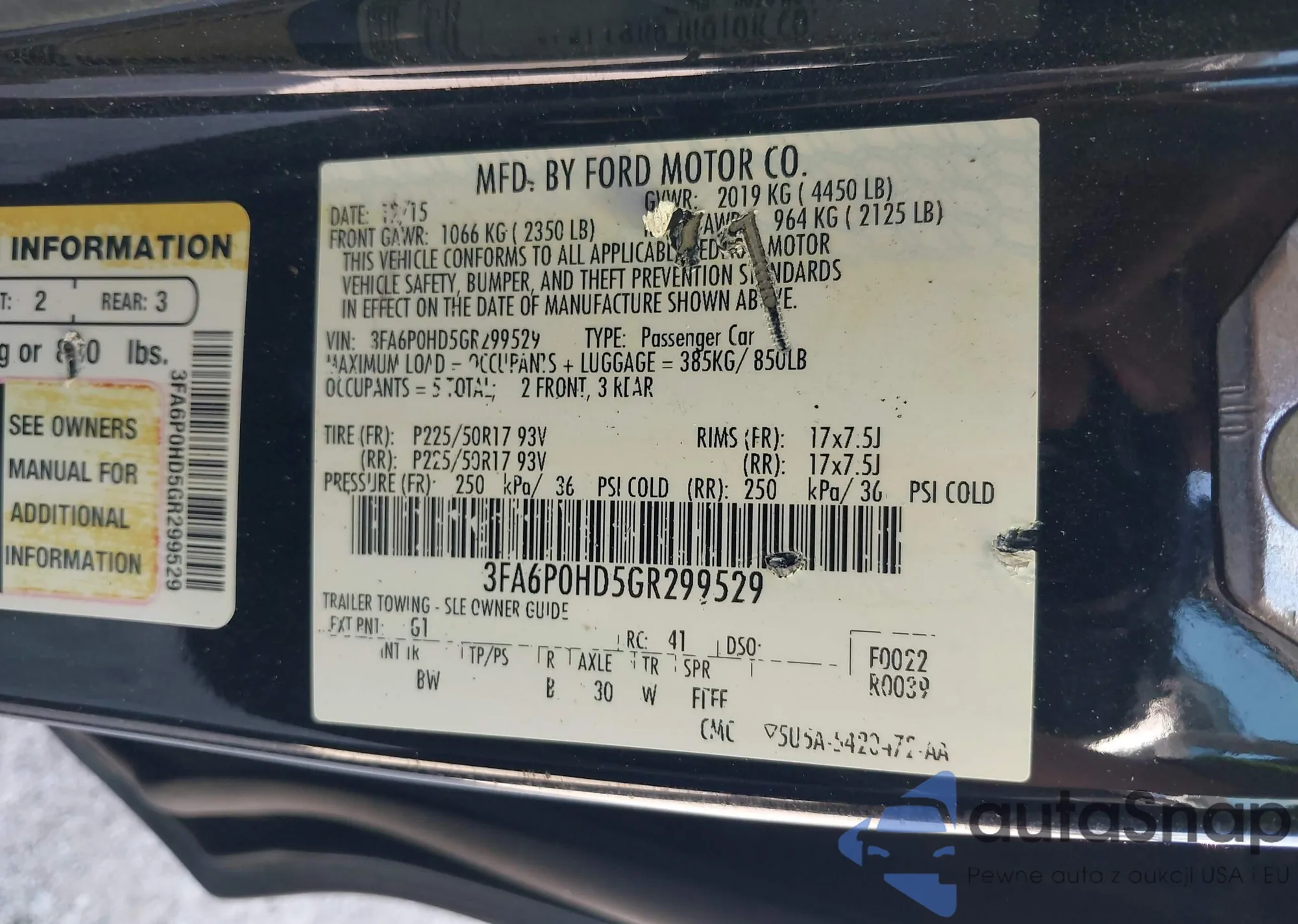 LOT: 43664629 VIN: 3FA6P0HD5GR299529
