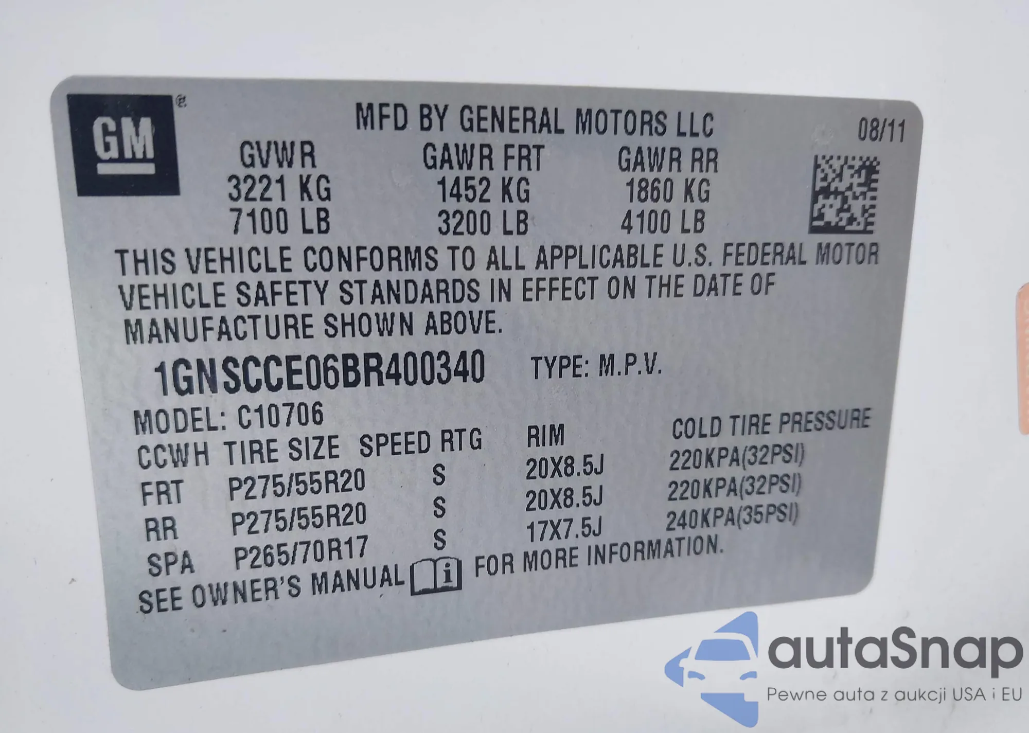 LOT: 43685517 VIN: 1GNSCCE06BR400340